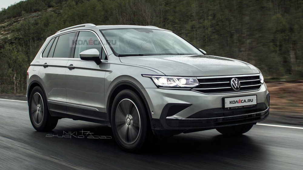 Завершим подборку двумя новинками от Volkswagen, первая из них – обновлённый кроссовер Tiguan, премьера которого состоялась в начале июля. Наши же рендеры были опубликованы ещё в середине февраля, и благодаря имевшимся на тот момент шпионским фотографиям автомобиля в камуфляже нам удалось воспроизвести характер изменений при рестайлинге. Немного различается нижняя часть переднего бампера, также сзади добавилась красная полоска во всю ширину бампера, а разница в графике фонарей объясняется различием в комплектациях конкретных автомобилей.