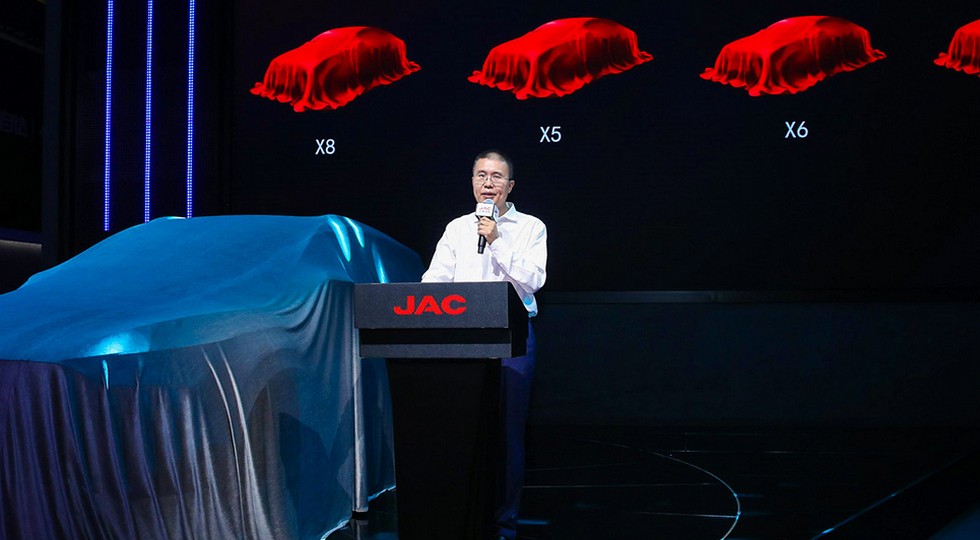 К JAC X4, X7 и X8 скоро присоединятся X5 и X6. Четвертая модель, спрятанная под пологом, названия пока не имеет, вместо него просто многоточие