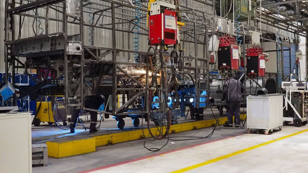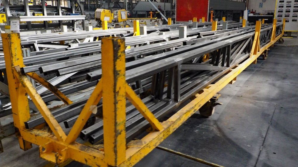 В целом мне показалось, что организация производственного процесса больше напоминает авиазаводы или судоверфи. Начинается все с производства несущего каркаса, силовой клетки, на которую затем будут навешаны все агрегаты будущего дорожного лайнера. И в начале процесса этот силовой каркас выглядит как штабеля разнообразных металлических профилей, в основном – труб квадратного сечения, частично прямых, частично – слегка изогнутых.