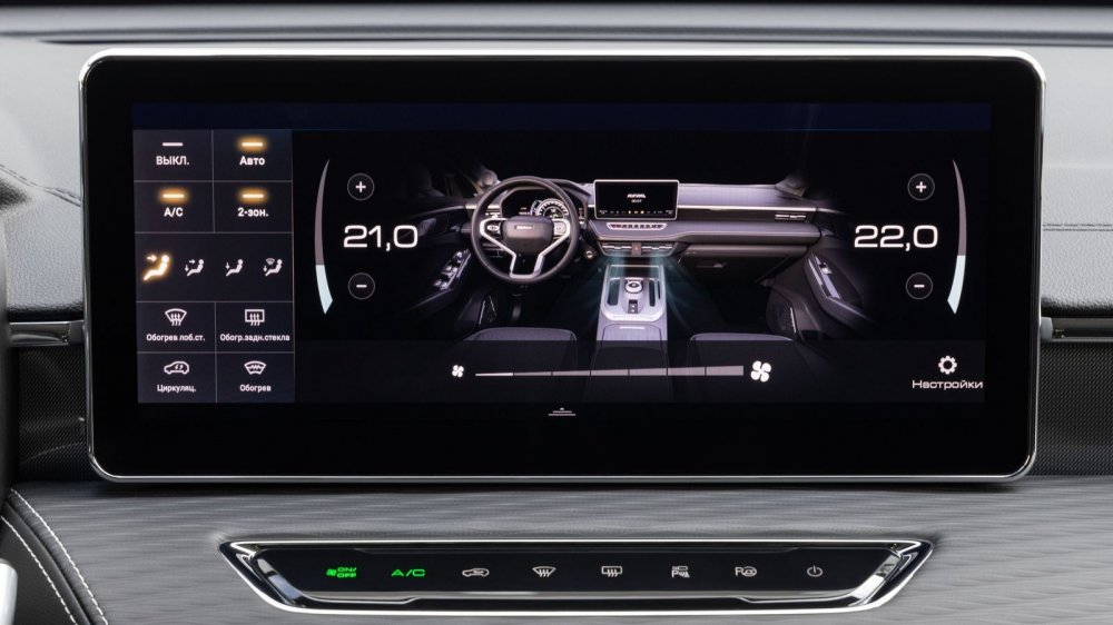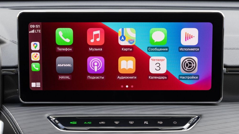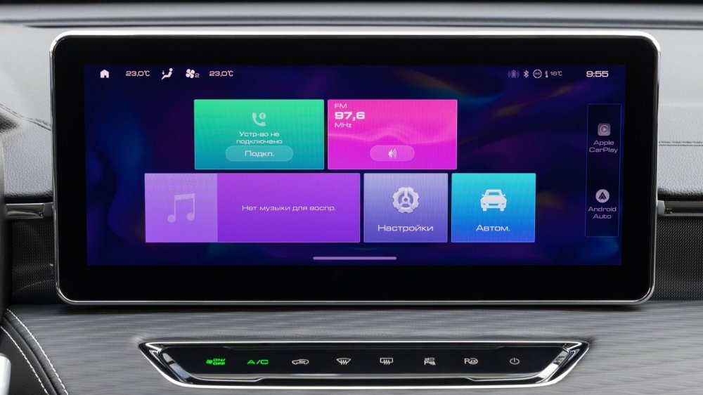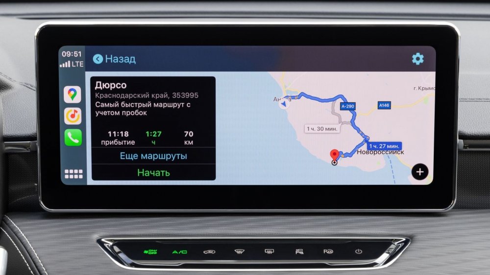 Если отвлечься от того, что экран, на который вынесено управление почти всем, включая климат, доставляет неудобства, сама по себе мультимедийная система вполне неплоха. Во всех комплектациях, кроме максимальной, ее экран имеет диагональ 10 дюймов, а в топе подрастает до 12,3 дюйма. Поставщик мультимедийной части – Harman, который разрабатывает и «железо», и программное обеспечение. Уже в средней комплектации появляется доступ в Интернет: SIM-карта от МТС предоплачена на 2 года вперед. Емкостной тачскрин имеет хорошее разрешение и поддерживает несколько одновременных касаний. Само собой, поддержка Apple CarPlay и Android Auto входит в стандартный функционал.