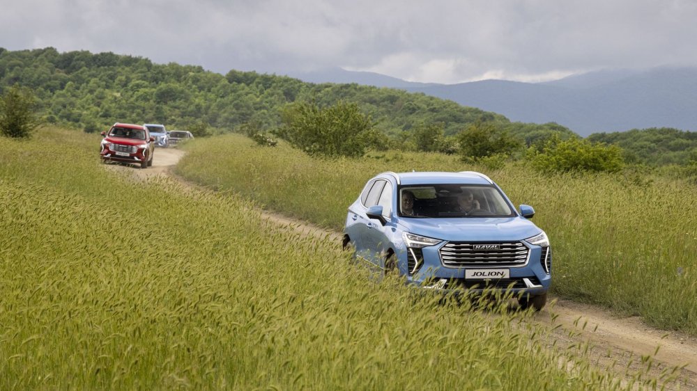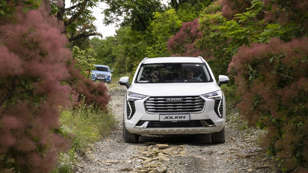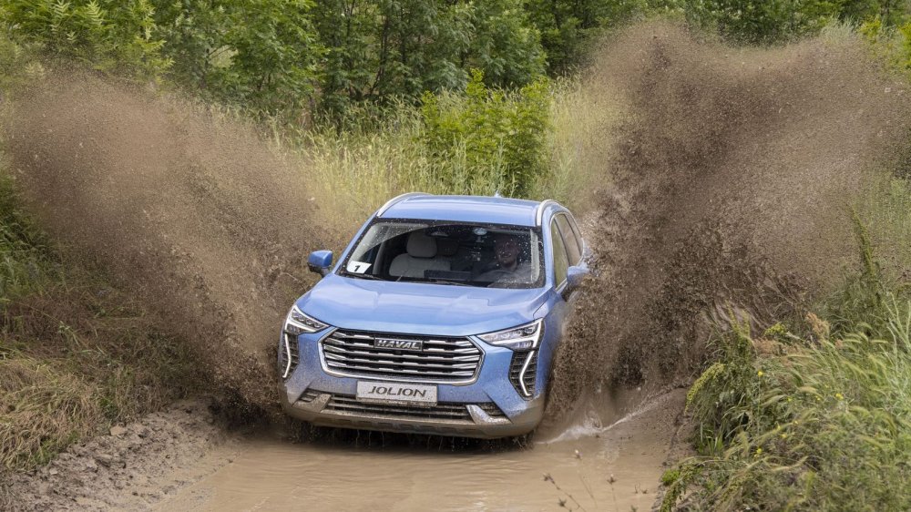 Само собой, ни мокрые сцепления, ни запас по моменту не гарантируют коробке бессмертия. Например, нам довелось почувствовать запах сцепления в салоне после долгих и методично-бессмысленных попыток заехать на вертикальный камень, в который автомобиль уперся одним из передних колес. Однако в адекватных режимах эксплуатации связка мотора и коробки работает четко и слаженно. На обгонах робот не стесняется крутить мотор до 5 тысяч оборотов, а при равномерном движении сбрасывает их до 1600-1800. Само собой, держать обороты в отсечке коробка отказывается даже в ручном режиме, да и тормозит двигателем Jolion неохотно. Мощности 143-сильного мотора кроссоверу хватает без запаса: обгоны даются без проблем, но тяги под педалью не очень много. Спортивный режим не слишком-то влияет на ситуацию – разве что пустоватый руль с электрическим усилителем получает больше искусственного усилия. Зато средний расход топлива в рваном тестовом режиме с обгонами и простоями держался около отметки в 9 литров на сотню. Стоит уточнить, что речь идет о переднеприводной машине: полноприводные кроссоверы в автосалонах появятся позже, а машины на тесте еще не встали на регистрационный учет, так что были доступны только для короткого знакомства на внедорожной секции.