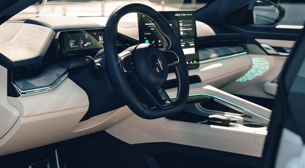 В салоне – экран вместо традиционной «приборки» (8,8”) и мультимедийная система с тачскрином диагональю 15,4 дюйма, у кресел есть функция массажа. Также в арсенале модели значатся: проекционный дисплей, трехзонный климат-контроль, панорамная крыша, система распознавания лиц. Кстати, в Geely пообещали обновление «по воздуху» не реже, чем раз в квартал. Объем багажника пока назван только максимальный – со сложенными спинками задних сидений этот показатель составляет 2144 литра. Багажник есть и спереди, но он небольшой.