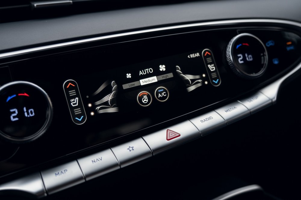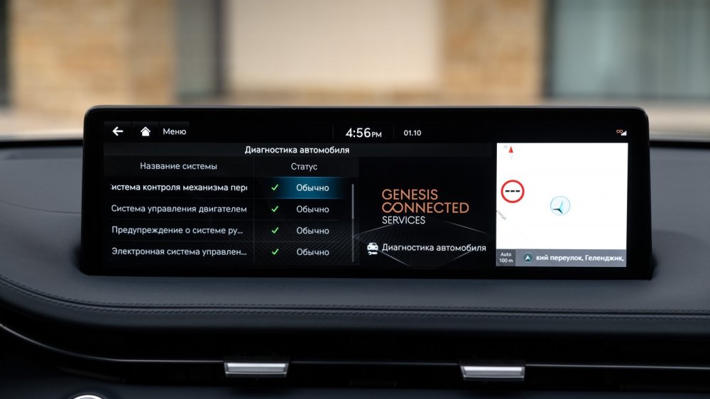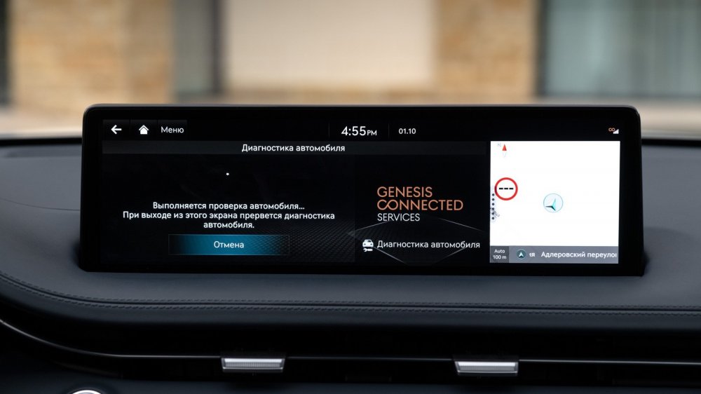 Функционал дополнен системой Genesis Connected Services с бесплатной подпиской на три года. С ее помощью можно дистанционно отпирать и запирать двери, пускать и глушить двигатель, открывать-закрывать окна, управлять климатической системой, просматривать изображения с камер кругового обзора и совершать множество других действий с автомобилем – полезных и не очень.