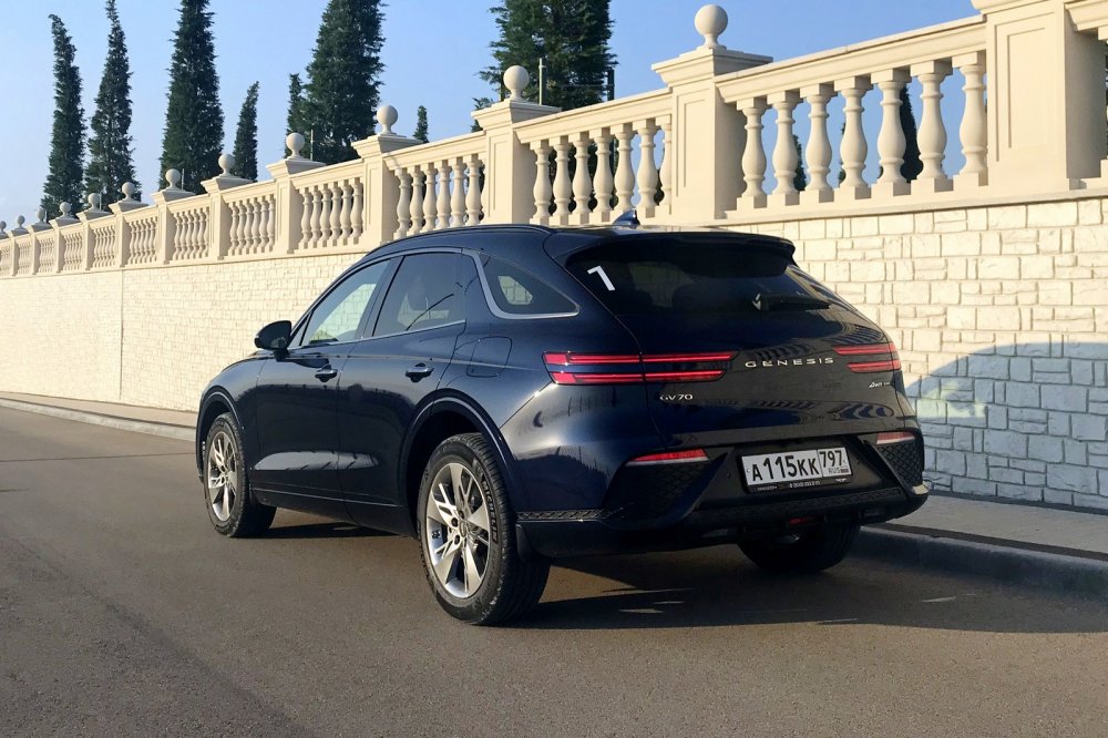 Похожая картина и с плавностью хода. На шоссе с хорошим асфальтом GV70 упруг и комфортен, но на городских выбоинах, люках, трещинах и лежачих полицейских подвеска пропускает жесткие удары. И это на базовых 19-дюймовых колесах! Понятно, что на опционных «катках» диаметром 21 дюйм будет еще хуже. А вот с шумоизоляцией порядок. Ни шины, ни ветер совершенно не раздражают.