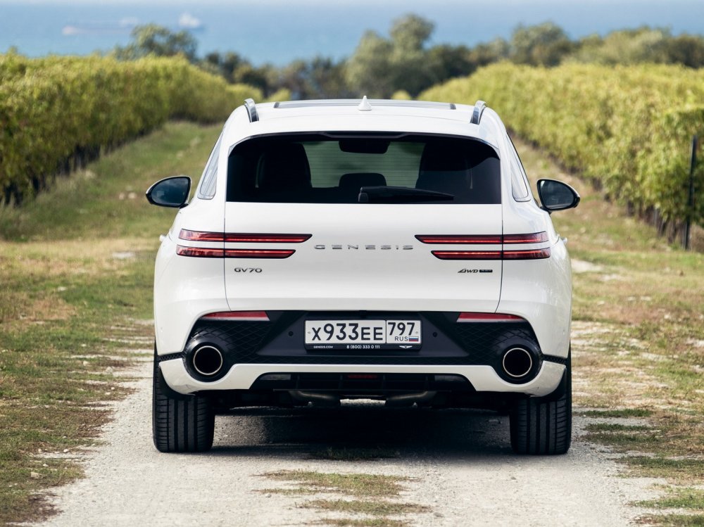 Чем сходу зацепить придирчивого покупателя, если не экстерьером? И с этим у GV70 все хорошо – узнаваемый стиль с двойными фарами и задними фонарями уже обкатан на современных моделях Genesis. Но по сравнению со старшим GV80 здесь более покатая крыша, благодаря которой семидесятка выглядит задиристо. Подчеркнуть динамичность можно и декором, благо есть два варианта оформления экстерьера – стандартный и спортивный. Последний отличается бампером с более крупными воздухозаборниками, задним бампером с огромными выхлопными патрубками и отсутствием хрома в отделке.