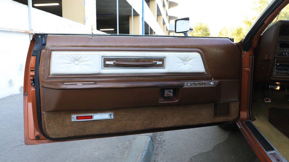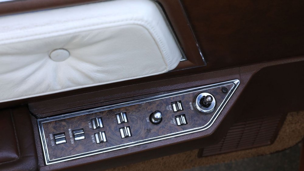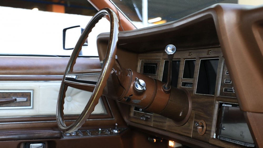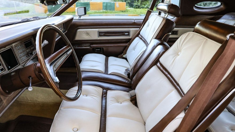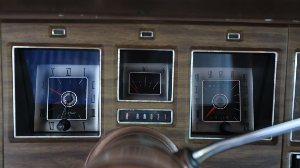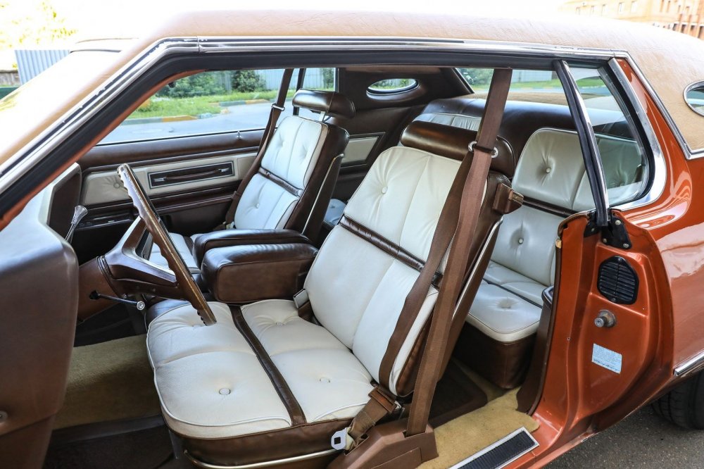 Можно подумать, что внутри дорогущий Lincoln Continental обязан изобиловать разными инновационными для своего времени штучками, но нет. Какого-то феерично-необычного функционала в нем, по-большому счету, и не заметно... Из существенных опций – только климат-контроль, круиз и регулировка положения рулевого колеса. Тем не менее внутри просто безраздельно властвует концентрированная роскошь, которая выразительно ощущается даже спустя без малого полвека. Дизайн салона для самых дорогих версий Continental Mark IV разрабатывали известные модельеры и модные дома – были доступны версии от Givenchy, Cartier, Pucci, Bill Blass. В нашем случае это как раз отделка «Cartier Edition».
