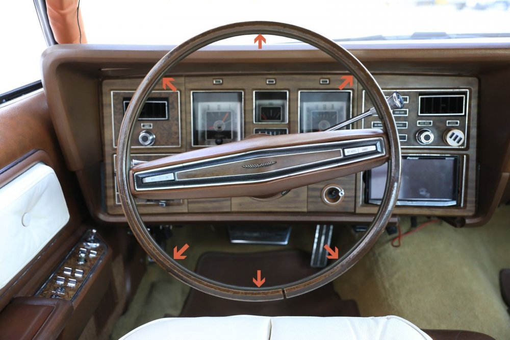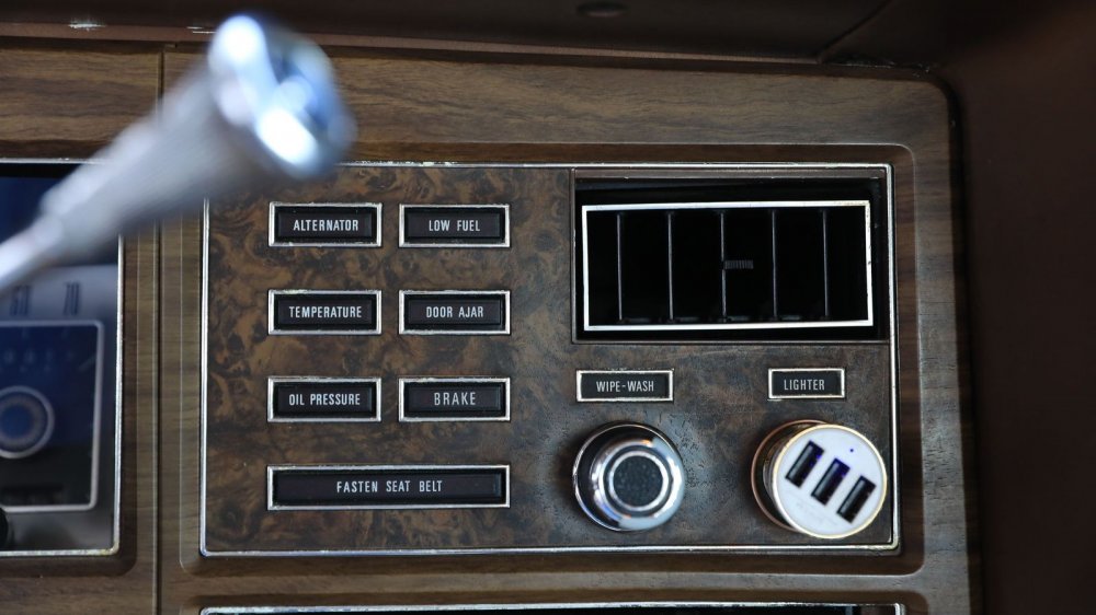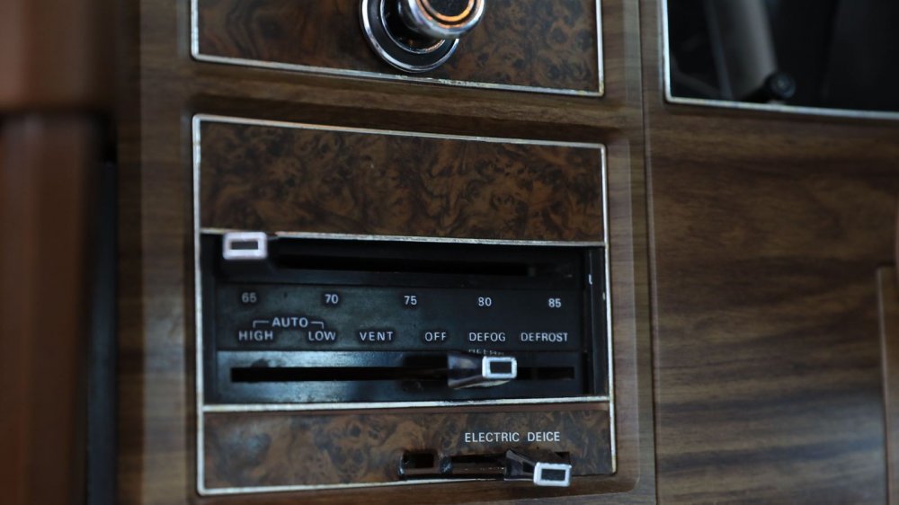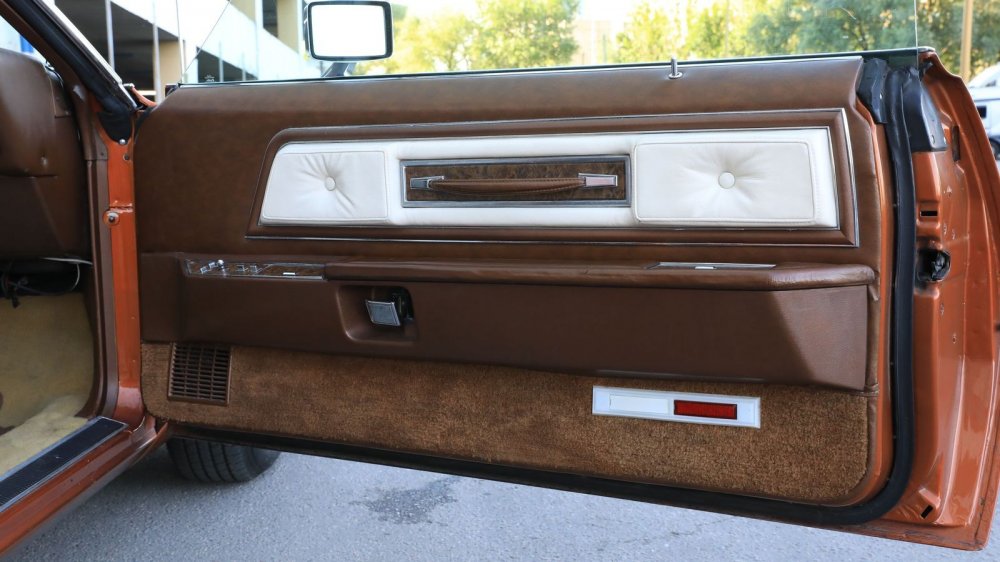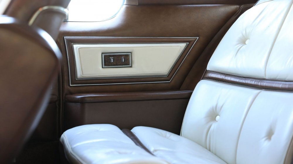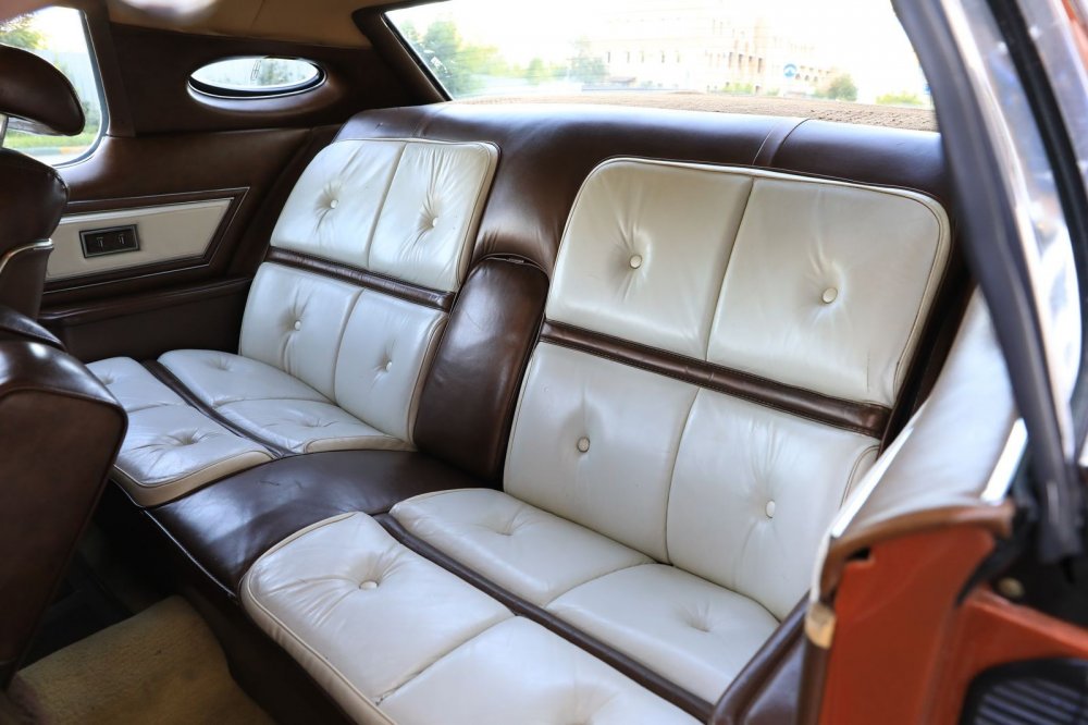 Можно подумать, что внутри дорогущий Lincoln Continental обязан изобиловать разными инновационными для своего времени штучками, но нет. Какого-то феерично-необычного функционала в нем, по-большому счету, и не заметно... Из существенных опций – только климат-контроль, круиз и регулировка положения рулевого колеса. Тем не менее внутри просто безраздельно властвует концентрированная роскошь, которая выразительно ощущается даже спустя без малого полвека. Дизайн салона для самых дорогих версий Continental Mark IV разрабатывали известные модельеры и модные дома – были доступны версии от Givenchy, Cartier, Pucci, Bill Blass. В нашем случае это как раз отделка «Cartier Edition».