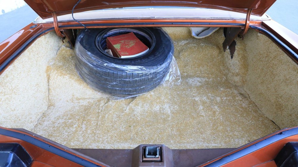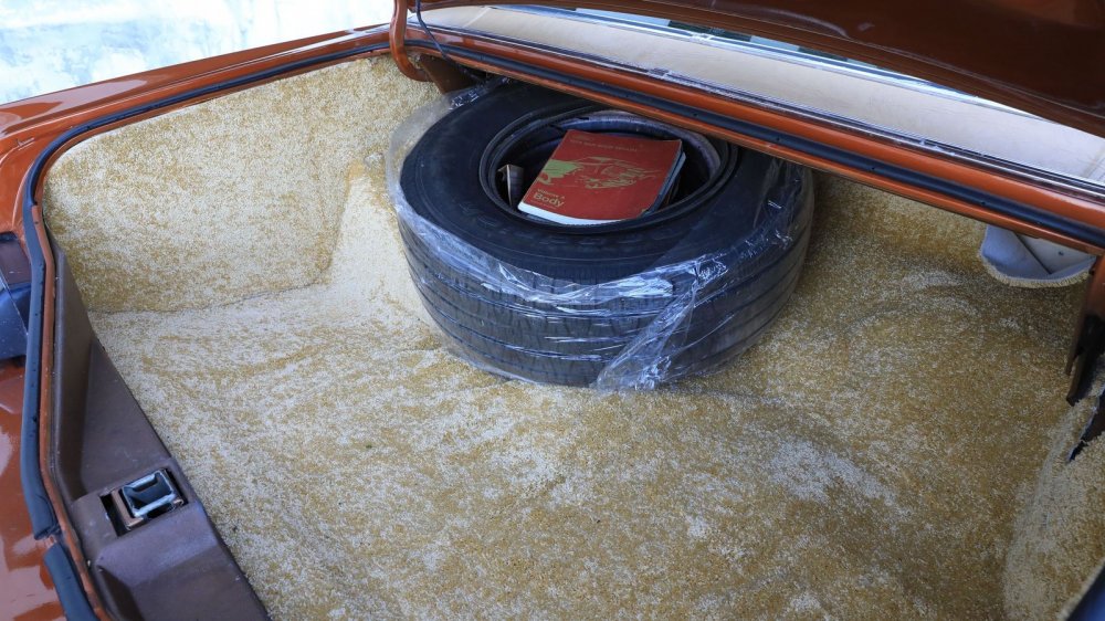 А вот, кстати, и багажник – несмотря на выштамповку в крышке, колесо тут вертикально никогда и не стояло. Штатное его положение – как в Волге 24/3110 – лежа у дальней стенки багажника. Там в оригинале для него имелись фиксаторы, хотя сейчас их нет. Зато лежит стопочка родных оригинальных «кама-сутр» по эксплуатации и обслуживанию, шедших в комплекте с машиной при покупке в салоне в далеком 1974-м…