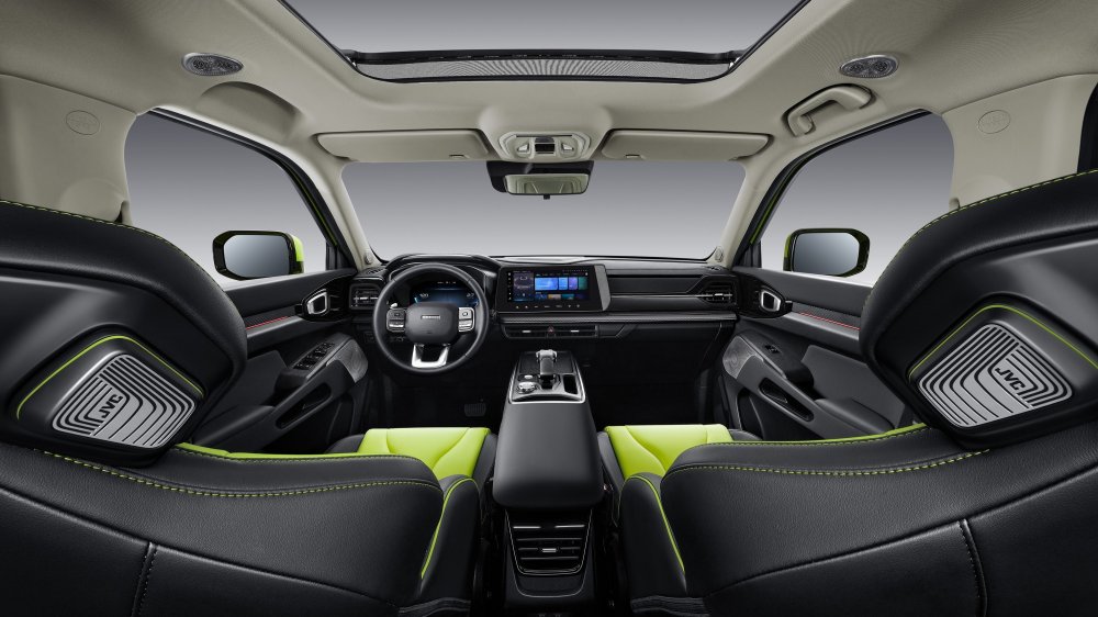 Вместо премьеры Haval опубликовал снимки салона KuGou. Общий стиль концепта X Dog сохранён, но серийный KuGou ожидаемо лишился большей части экранов (у концепта они были встроены в дверные карты, дефлекторы системы вентиляции и даже руль) и гигантской «скобы» на центральном тоннеле, зато от концепта сохранились встроенные в подголовники громкоговорители аудиосистемы — это пока редка опция для массовых и относительно недорогих кроссоверов.