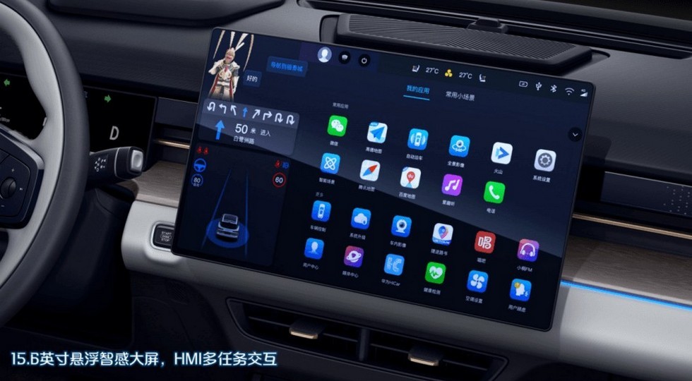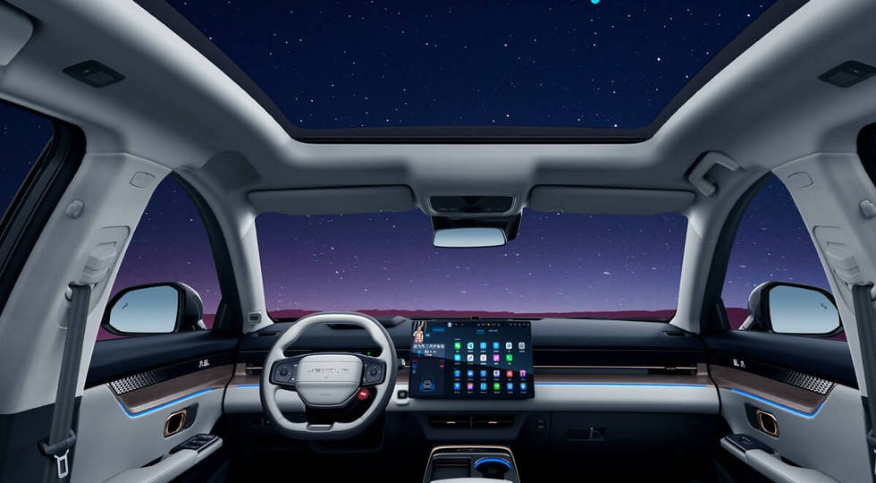 Интерьер получился лаконичным, тут двухспицевое рулевое колесо, «парящий» центральный тоннель и мультимедийная система с прилепленным к передней панели тачскрином. Топовый кросс имеет планшет диагональю 15,6 дюйма, у остальных версий экран на 12,8 дюйма. Еще один экран (8”) расположен перед водителем, а за доплату предусмотрен проекционный дисплей. Управление трансмиссией возложено на подрулевой рычажок. У дорогих версий также есть небольшие экранчики на передних дверях (они отображают температуру), переднее пассажирское кресло с выдвижной подставкой для ног и отдельная кнопка Sport на руле, активирующая соответствующий режим. В арсенале Dasheng еще значится система распознавания лиц. К слову, электроника — от компании Huawei.