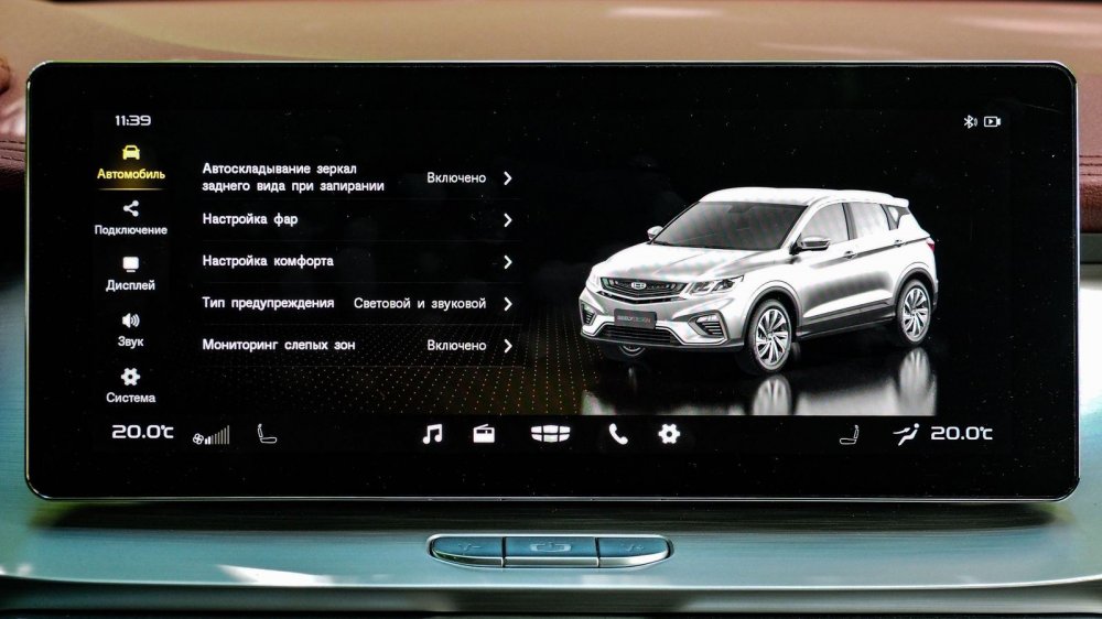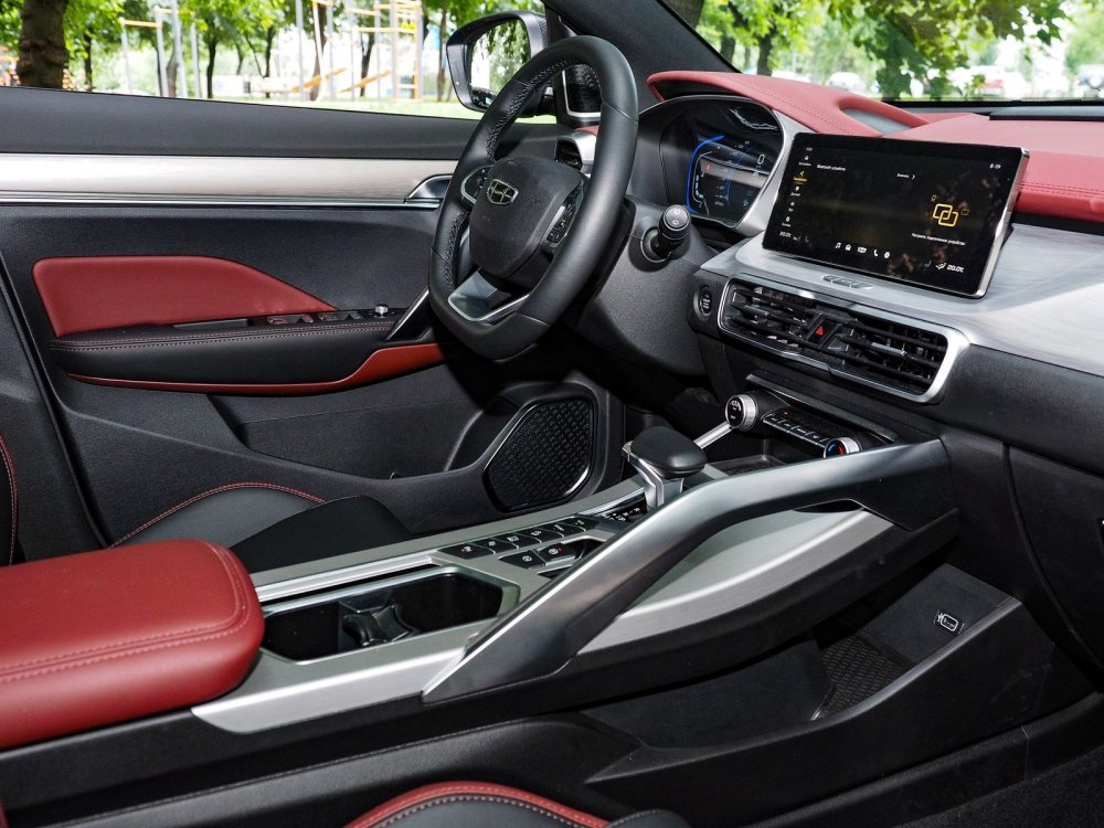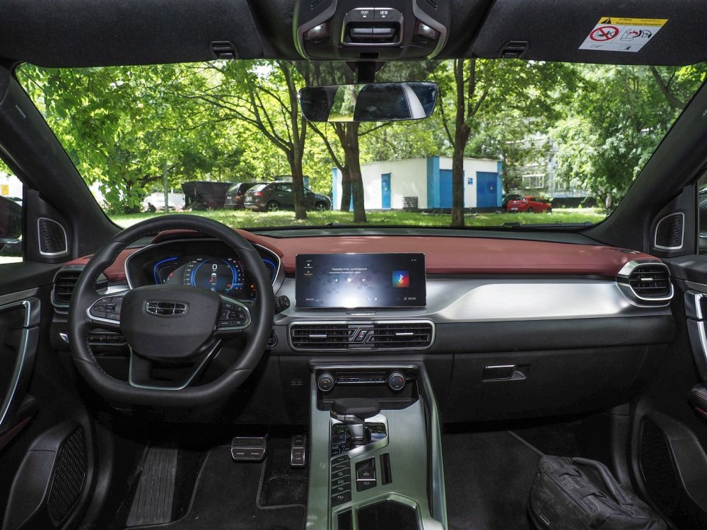 А как в Geely все прорисовано – без намека на китч, но скучать глазам некогда. Металлизированный текстурированный пластик стильно «облизывает» переднюю панель с минимумом кнопок. Центральную консоль с рядком расположенных под углом клавиш управления режимами движения и вспомогательных систем (это только мне мерещится стилистика Porsche?) украсил новый джойстик переключения передач. Центральный дисплей с прекрасной графикой и быстродействием даст фору большинству японских мультимедиек. Да, система – без привычного Android Auto и Apple Carplay, и это поначалу удивляет. Оказывается, здесь свое приложение, которое зеркалит экран смартфона. По мне, так со своей навигацией приятнее, да и ограничений по доступности приложений, как в Haval, нет.