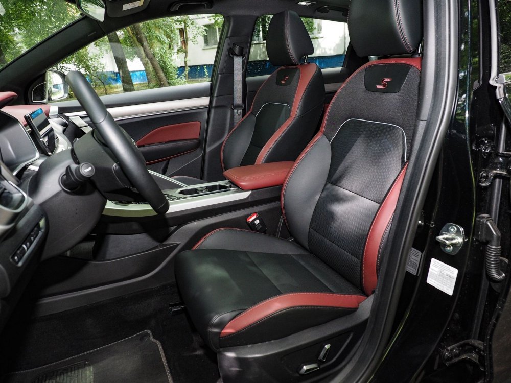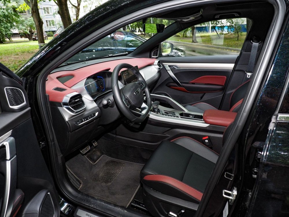 Найти свою посадку за рулем Coolray проще. Хотя подушка сиденья все же коротковата, но боковая поддержка лучше выражена, да и в целом профиль кресла удачнее. По крайней мере – для водителя среднего роста и умеренного телосложения. Крупным людям выше 180 см стоит быть готовым к тому, что запаса по продольной регулировке уже не будет.