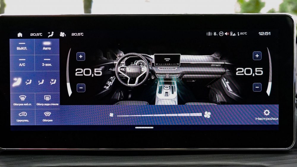 Haval еще щедрее: здесь крупнее центральный дисплей, полный набор обогревов, а лобовое стекло греется по всей площади, есть проекционный дисплей, автопарковщик и «круиз». Климат-контроль двухзонный, можно выбирать из трех цветов кожи для отделки салона. Увы, нет панорамной крыши и встроенного регистратора.
