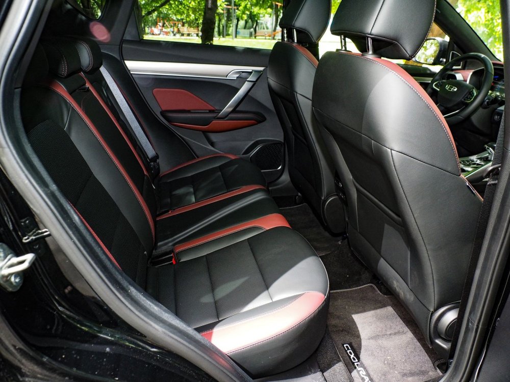 Но все это вы можете не рассказывать задним пассажирам – они все равно выберут Haval. У модели длинная колесная база, и заветные миллиметры пошли именно на пространство во втором ряду. В салон спокойно входишь через широкий проем и садишься сам за собой, центральный тоннель фактически отсутствует. Coolray теснее, и тут уже подпираешь коленями спинку переднего сиденья, крупным людям неудобна посадка-высадка. И отсутствие тоннеля – слабое утешение.