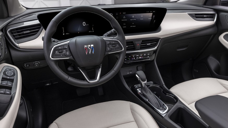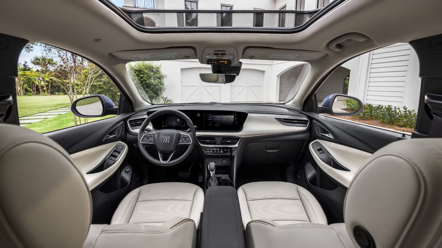 В ходе обновления кроссовер получил иной салон, который он разделил со своим «близнецом» – Chevrolet Trailblazer. Посвежевший Encore GX снабдили восьмидюймовой цифровой «приборкой» и тачскрином информационно-развлекательной системы диагональю 11 дюймов (в предшественника – 8 дюймов). У мультимедиа иной интерфейс, а также есть функция беспроводной связи Apple CarPlay и Android Auto. У обновлённой модели иначе оформлена передняя панель, другие дефлекторы вентиляции, а у варианта ST – усечённый снизу руль.