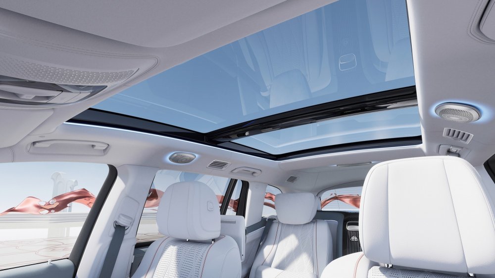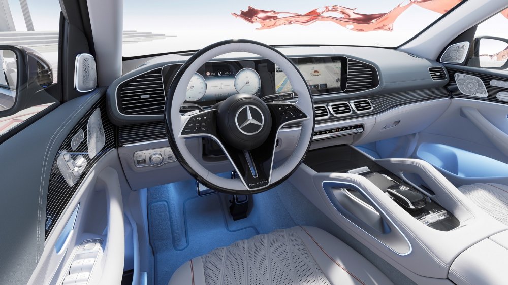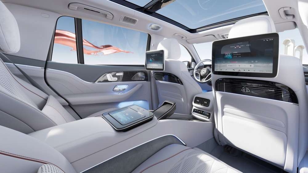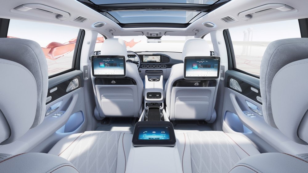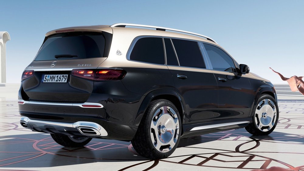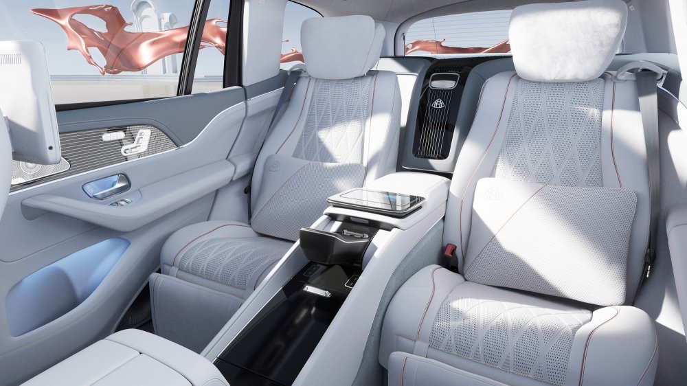 Особняком стоит роскошная версия Mercedes-Maybach GLS 600: только у неё есть «царский» салон с двумя рядами кресел, причём второй ряд смещён назад и ограждён от багажника перегородкой. Версия Maybach получила новый передний бампер с более компактными боковыми воздухозаборниками, прикрытыми сеткой в виде орнамента из эмблем Maybach, изменён дизайн штатных для этой версии 23-дюймовых колёс, световые проекции на землю при открытых дверях стали более разнообразными и изысканными, кресла теперь имеют ромбовидную центральную часть обивки. Двигатель М 177 на Mercedes-Maybach GLS 600 выдаёт прежние 557 л.с. и 730 Нм.