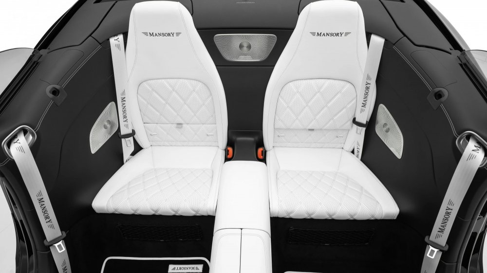 Салон кабриолета получил полностью новую обивку (руль в местах основного хвата обтянут замшей), новые алюминиевые педали, многочисленные вставки из карбона и новые коврики Mansory. В двери интегрированы лампы-проекторы: когда двери открыты, эти лампы проецируют на земле эмблемы Mansory. Багажник полностью обшит стёганой кожей. Конкретная цветовая палитра ограничена только фантазией заказчика.