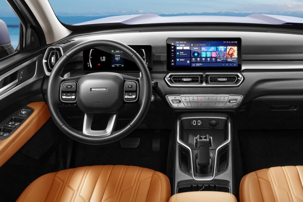 Внутри Haval H5 почти скопировал донорский пикап, разве что переделали центральный тоннель, плюс появился селектор коробки, как у Tank 300, да экран мультимедийной системы стал больше (12,3 дюйма против 10,25 дюймов у Great Wall Poer KingKong). Ну и еще заменили материалы отделки. В документах Минпрома КНР для нового внедорожника была заявлена только пятиместная версия, но не исключено, что позже в продаже появится и трехрядный SUV.