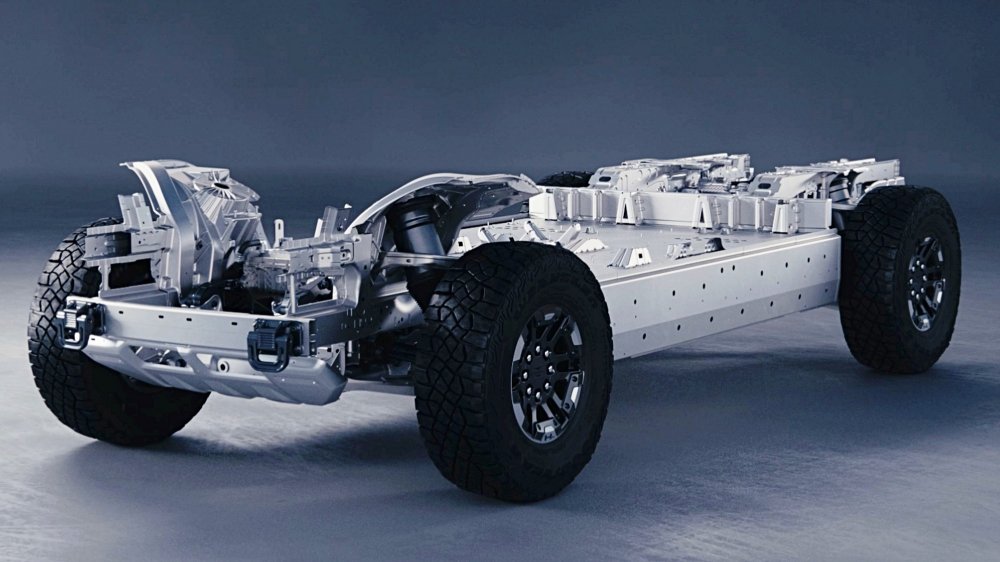 В течение суток после премьеры GM выпустила несколько дополнительных пресс-релизов, посвящённых техническим особенностям GMC Hummer EV, которыми мы и хотим с вами поделиться. В основе пикапа лежит представленная ещё весной модульная электромобильная платформа, на которой GM создаст десятки разнообразных моделей (в том числе большой кроссовер Cadillac Lyriq). Разработанная совместно с LG Chem 800-вольтовая литий-ионная батарея Ultium с низким содержанием кобальта (это позволяет уменьшить цену) вмонтирована в раму. Обратите внимание на внушительную высоту лонжеронов — на весенней презентации платформы батареи были более компактными. Максимальная мощность зарядки батареи — 350 кВт. На такой мощности пополнить запас хода на 100 миль (161 км) можно всего за 10 минут. Ёмкость батареи GM не раскрывает. Сверху и снизу батарея защищена прочными металлическими листами, которые попутно увеличивают жёсткость рамы на кручение.