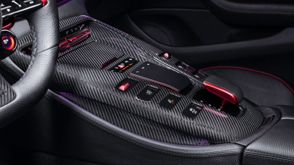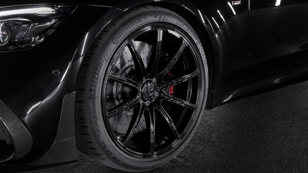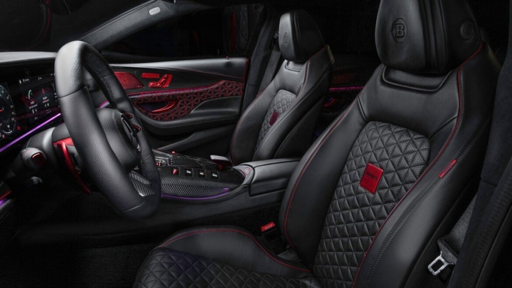 Колёса Brabus, разумеется, установил свои — Brabus Monoblock Z Platinum Edition, 21-дюймовые на передней оси и 22-дюймовые на задней. Углепластиковый аэродинамический обвес в данном случае гораздо скромнее, чем у монструозного Brabus Rocket 900, но ведь и стоит гибрид примерно на 50 тысяч евро меньше. В стандартное оснащение входят новая система выпуска из титана и карбона, заниженная подвеска, мощные тормоза Brabus и полностью перешитый салон с отделкой из углепластика, алюминия, кожи и алькантары.