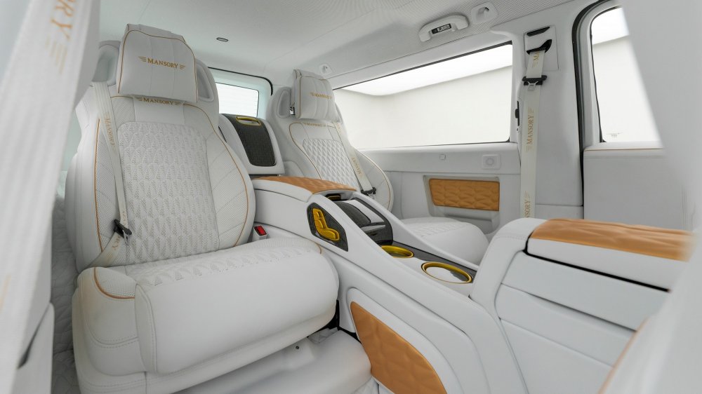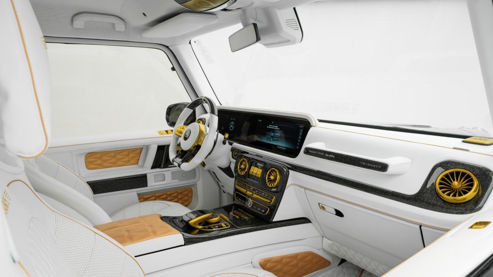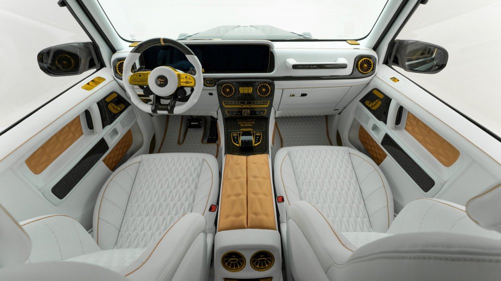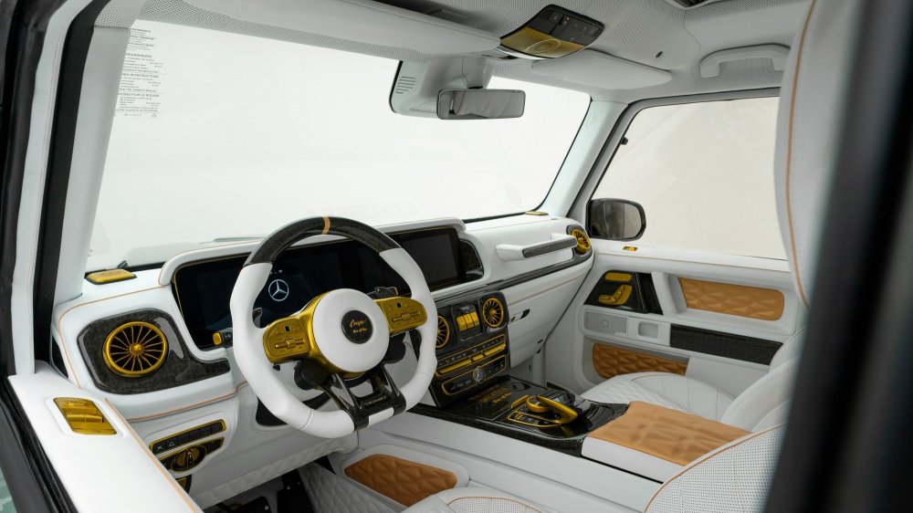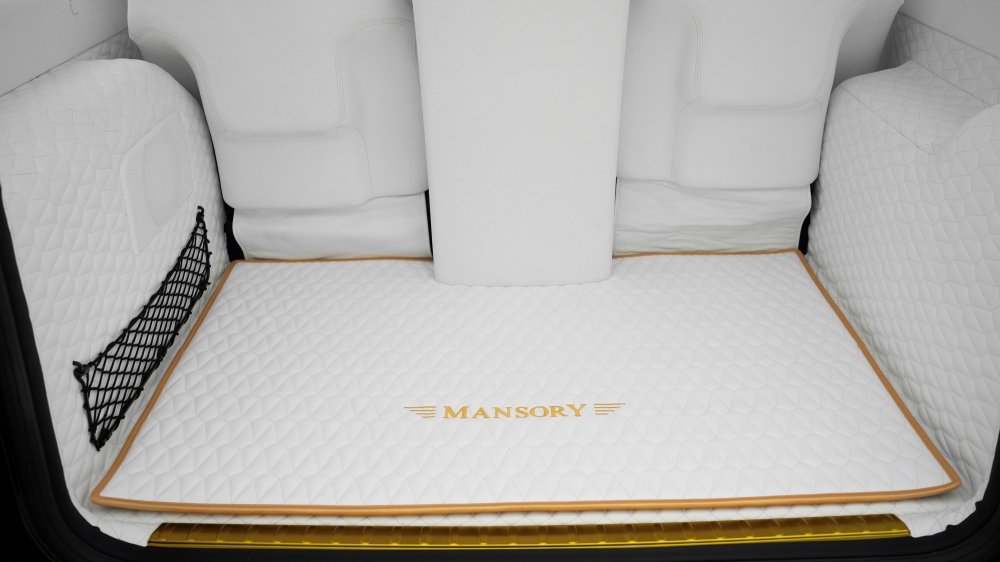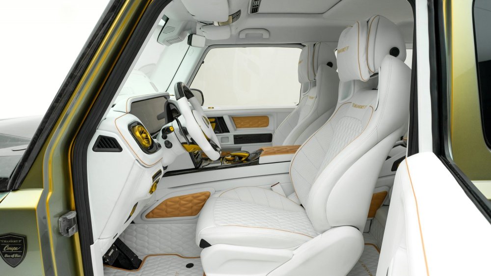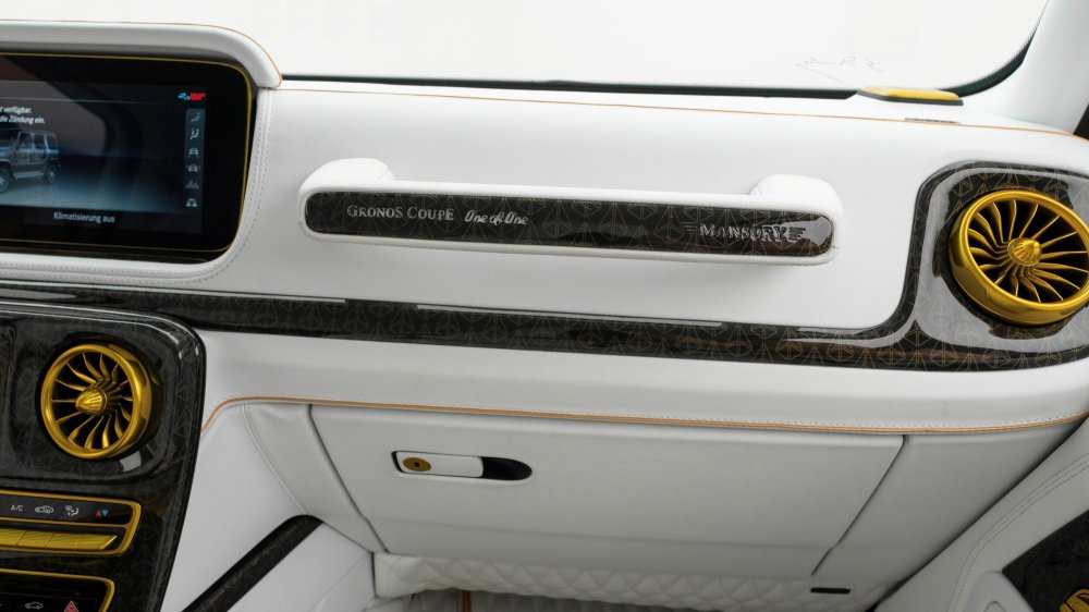 «Купе» на базе «гелика» разрабатывалось параллельно с трёхдверным Lamborghini Urus и примерно по тому же же рецепту, слово «купе» мы берём в кавычки потому, что на самом деле Mansory Gronos Coupe EVO C — это просто трёхдверный внедорожник: большая багажная «калитка» сохранена, а само багажное отделение, как и весь салон, отделано нежнейшей белой стёганой кожей с коричневыми вставками.