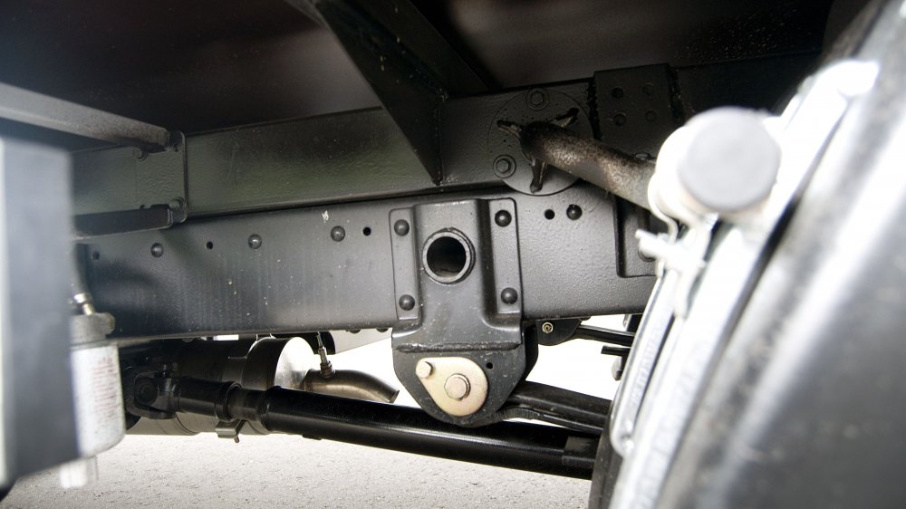 В остальном шасси осталось заводским. Рама тут лестничного типа из высоколегированной стали, толщина лонжерона – 50 мм. Стандартный 2,2-литровый турбодизель Quanchai Q23-132E60 имеет мощность 128 л. с. (максимальный крутящий момент – 315 Нм). Выбора коробки передач нет – только механическая пятиступка 5G32 с тросовым механизмом переключения.