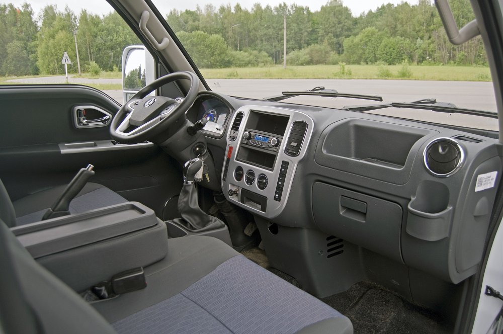Подвеска вызывает спорные ощущения. На Дмитровском полигоне была возможность проехаться по брусчатке, и там машина вела себя достойно. Но вот на волнах асфальта кабина на своём рессорном переднем мосту с такой великой охотой ходила вверх-вниз, что начинало укачивать. Думается мне, для межгорода такая машинка не слишком годится. Зато в городе с её небольшим радиусом разворота – самое то.