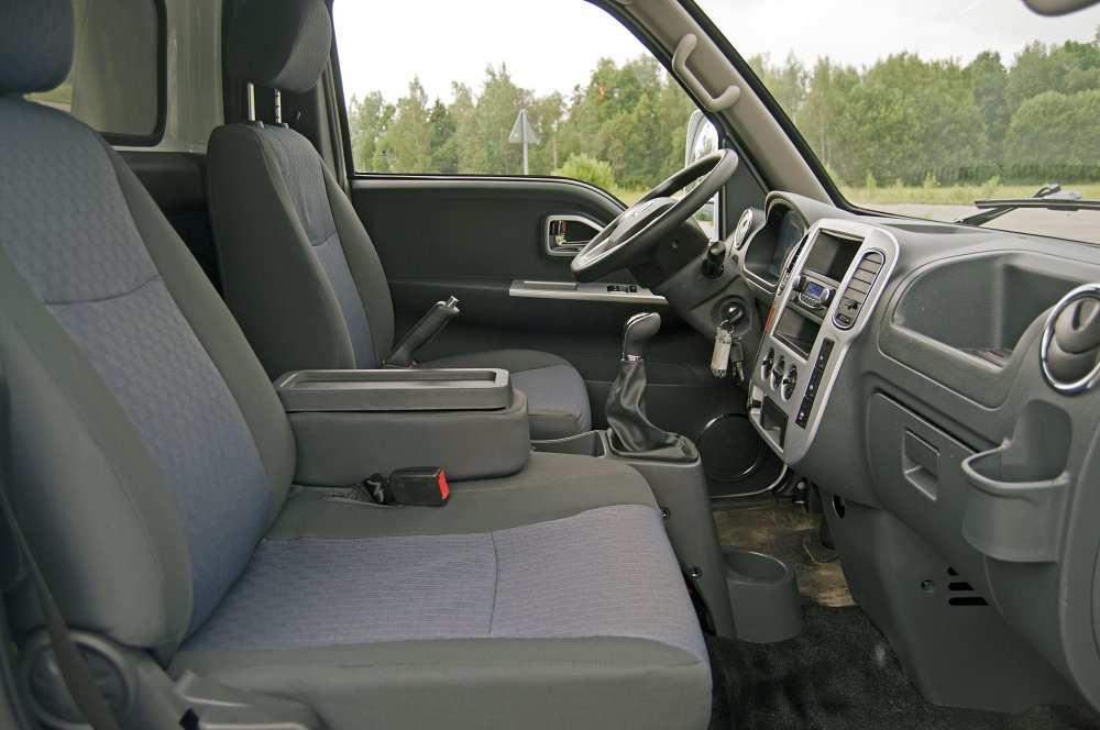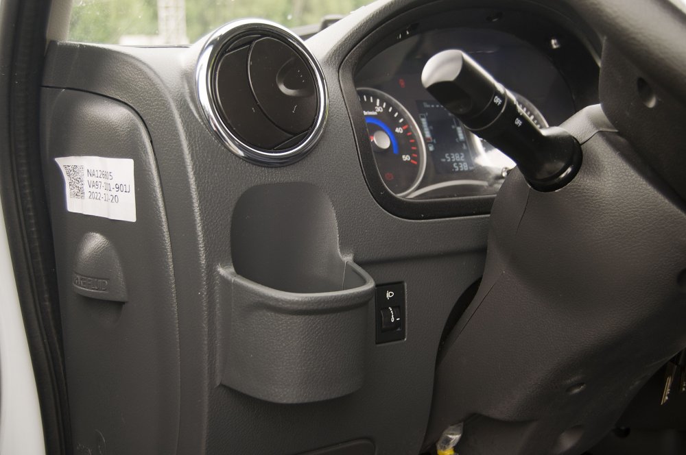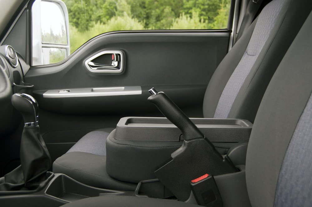 Приборная панель – привычная стрелочная, с покушением на некоторую игривость. Но читается она хорошо, тут претензий нет. И в целом надо признать, что жаловаться на эргономику не приходится: посадка, расположение органов управления, обзор – всё на вполне достойном уровне. Разве что боковые зеркала заднего вида можно было бы разнести пошире: в них больше видны стенки фургона, а не дорога. Зачем в кабине осталось зеркало заднего вида, я так и не понял: и на промтоварном фургоне, и на тентованном кузове, и на рефрижераторе что-то увидеть в него, само собой, невозможно.