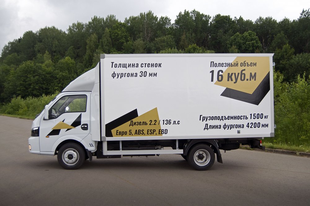 Самое доступное исполнение – это бортовой грузовик (платформа 4200х2000 мм). Оно может быть в двух вариантах: со стальными бортами или с алюминиевыми. В первом случае за машину придётся заплатить 2 555 000 руб., во втором – 2 593 000 руб. Эти же модификации с тентом будут стоить 2 605 000 руб. и 2 626 000 руб. соответственно.