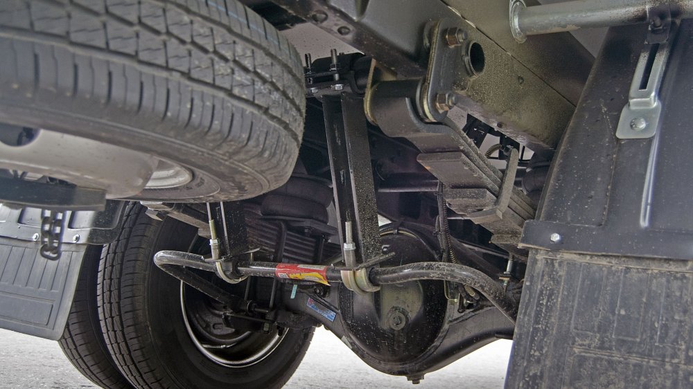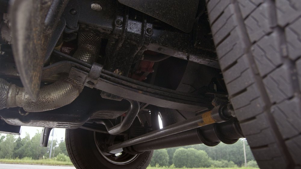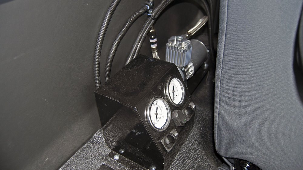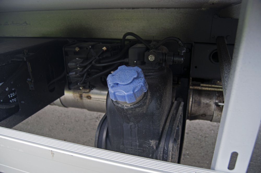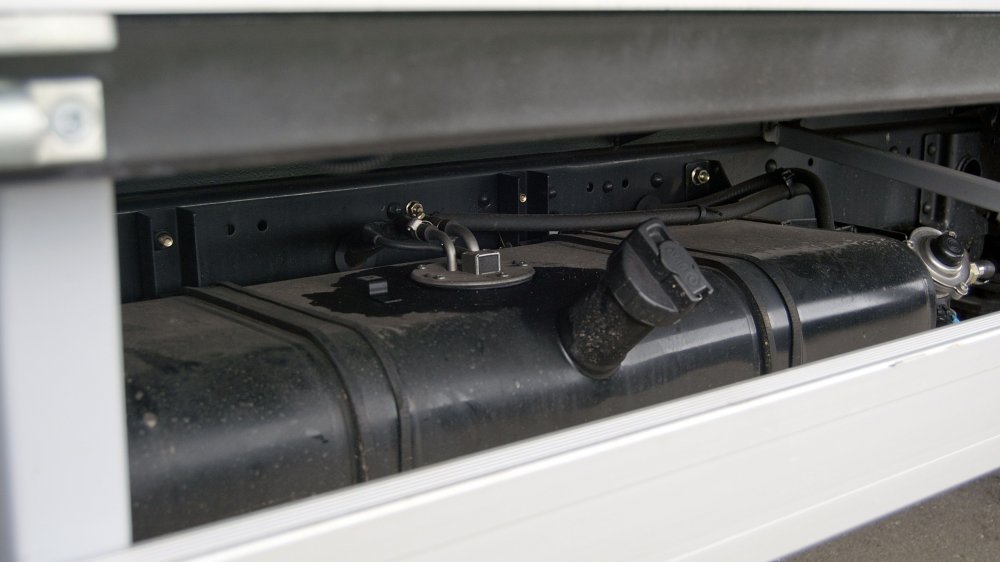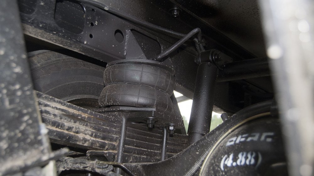 Captain-T – типичная малотоннажная машина для максимально практичной эксплуатации. Абсолютно ничего инновационного или сложного в ней нет: рама, неразрезной мост сзади, балка спереди, малолистовые рессоры со стабилизаторами поперечной устойчивости в подвесках, механическая пятиступенчатая коробка передач и 2,2-литровый дизельный мотор. Но это – в базовом шасси, а вот в машинах, прошедших доработку в Промтехе, есть одна особенность – пневмобаллоны в задней подвеске. Само собой, они там не для комфорта, а для возможности настроить жёсткость подвески в зависимости от нагрузки. Пневмосистема двухконтурная, так что баллоны над каждой рессорой можно подкачать отдельно. Ну а манометры с кнопками включения подкачки стоят в кабине, позади сидений.