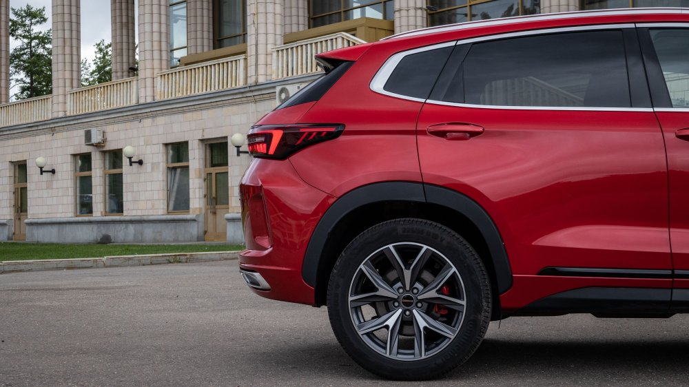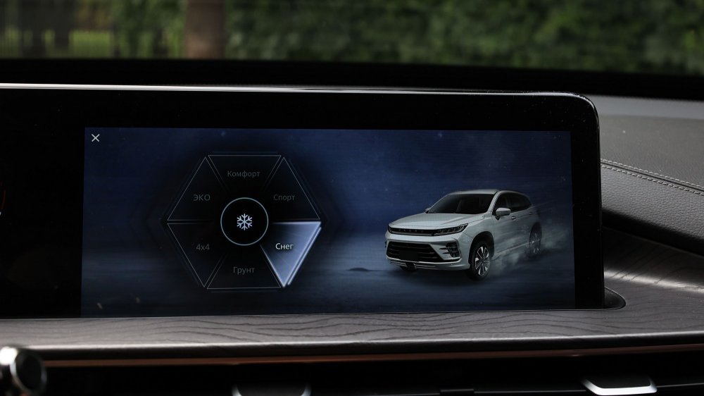 Если же не гнать по ухабам и не нырять сходу в глубокие лужи, а аккуратно форсировать препятствия, Exeed LX AWD неплохо справится с задачей. Дорожный просвет тут хоть и оставили без изменений, но это все же приличные для кроссовера 185 мм. Относительно короткие свесы кузова и плоское днище без каких бы то ни было заметных «якорей», а также толково настроенная система спуска с горы – еще пара плюсиков в карму.
