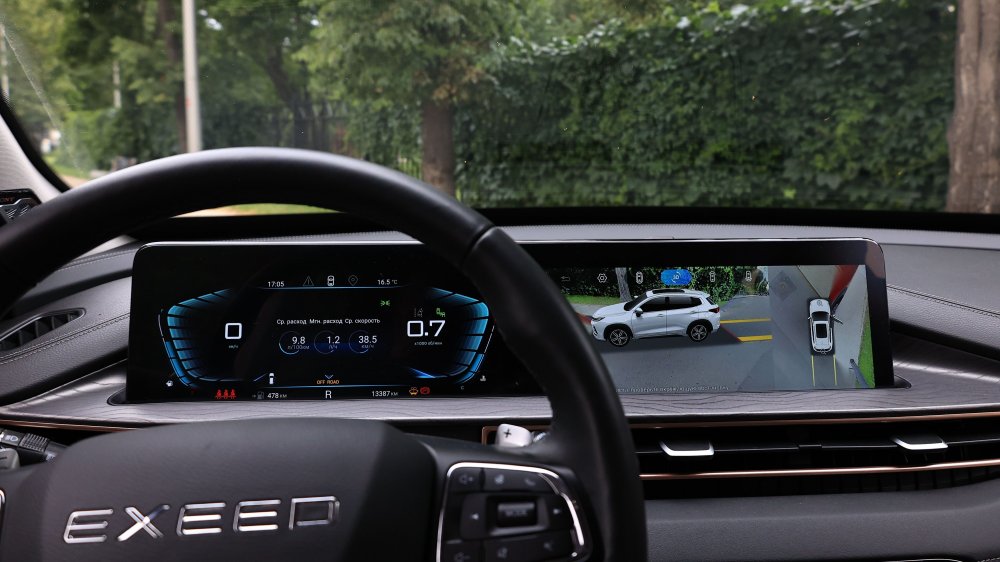 Справедливости ради, это единственная помарка в работе вспомогательных систем, а их в Exeed LX AWD хватает. На адаптивном контроле я уехал от города на сотню километров, и у меня ни разу не возникало желание вмешаться в его работу: дистанцию машина держит адекватно сообразно выбранному интервалу, притормаживает умеренно интенсивно и оперативно догоняет идущую впереди машину, не создавая соблазна вклиниться соседям по потоку. Система удержания в полосе держит автомобиль по центру и не дает гулять по ряду. Помимо этих функций есть и те, воспользоваться которыми, к счастью, не пришлось: это автоматическое экстренное торможение и предотвращение столкновения при выезде задним ходом.