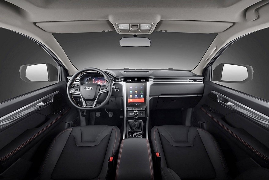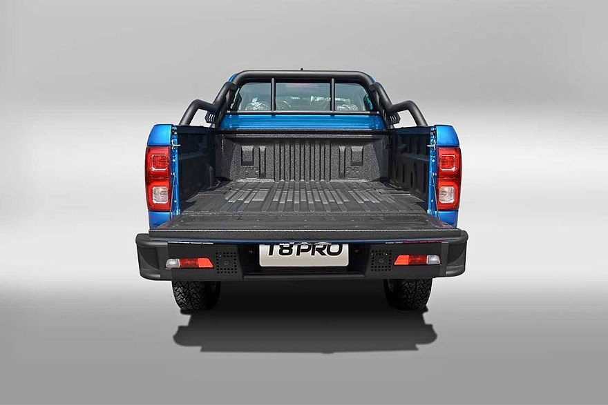 Напомним, в родном Китае JAC T8 Pro выпускают с 2018 года – по сути, он представляет собой доработанный грузовик JAC T6. У пикапа рамная конструкция, спереди – независимая пружинная подвеска, сзади – неразрезной задний мост на рессорах. Рулевой механизм – с гидроусилителем. В РФ привезли двухрядную модификацию длиной 5325 мм, колесная база такого T8 Pro равна 3090 мм (в Поднебесной еще есть более крупный вариант). Размеры грузовой площадки: 1520/1520/470 мм. Паспортный дорожный просвет – 220 мм, грузоподъемность – 900 кг.