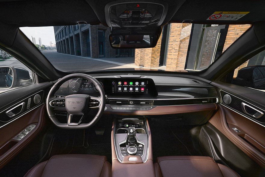 У Tenet T7 список оборудования включает в себя: шесть подушек безопасности (включая боковые шторки), круиз-контроль, датчики дождя и света, камеры кругового обзора, обогрев лобового стекла и форсунок омывателя, подогрев всех сидений и рулевого колеса, двухзонный климат-контроль, устройство для беспроводной зарядки смартфонов, большое табло, объединяющее виртуальный щиток приборов и центральный тачскрин информационно-развлекательной системы с поддержкой Android Auto и Apple CarPlay (диагональ каждого экрана – 12,3 дюйма).