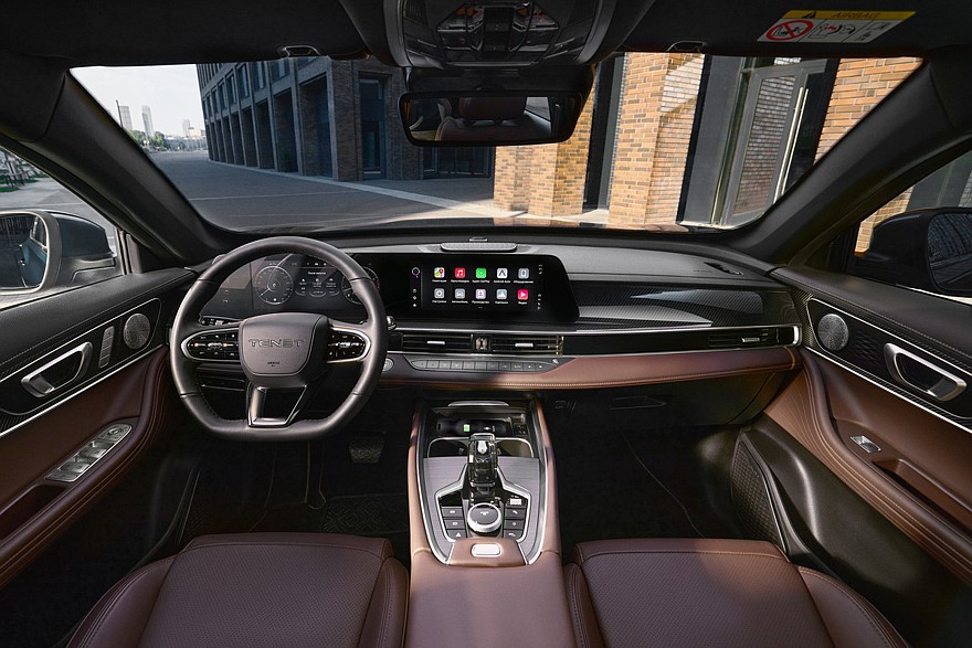 В списке оборудования Tenet T7 заявлены: подогрев лобового стекла и форсунок омывателя, подогрев руля и всех кресел, двухзонный климат-контроль, объединенные в табло виртуальная приборка и тачскрин мультимедиа (каждый экран диагональю 12,3 дюйма), беспроводная зарядка, камеры кругового обзора, шесть подушек безопасности и круиз-контроль. Кроме того, для паркетника предусмотрена телематическая система Tenet Remote: со смартфона можно будет запустить двигатель, включить «климат» или подогрев, отслеживать состояние машины и т.д.