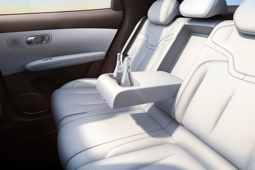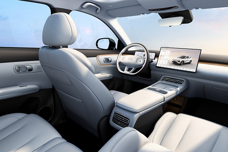 В салоне установлены сплющенный трехспицевый руль, двухэтажный тоннель и раздельные экраны приборки и мультимедиа. Под центральными дефлекторами обдува расположен ряд физических клавиш. На тоннеле – две площадки для беспроводной зарядки и пара подстаканников.