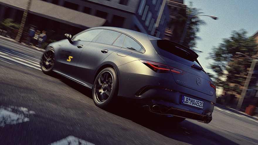 Прощальные четырёх- и пятидверный варианты Mercedes-AMG CLA 45 S 4Matic+ получили кузов в оттенках либо Manufacturer Mountain Grey Magno, либо Night Black Uni. Чёрно-жёлтая графика есть на корпусах наружных зеркал, а также на передних дверях – крупное изображение индекса модели. Кроме того, особенные седан и универсал получили 19-дюймовые матово-чёрные кованые колёсные диски с контрастным жёлтым логотипом AMG и лавровым венком на ступицах.