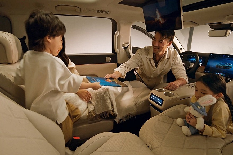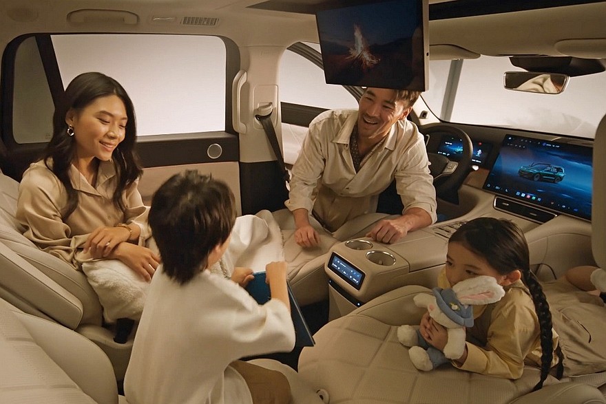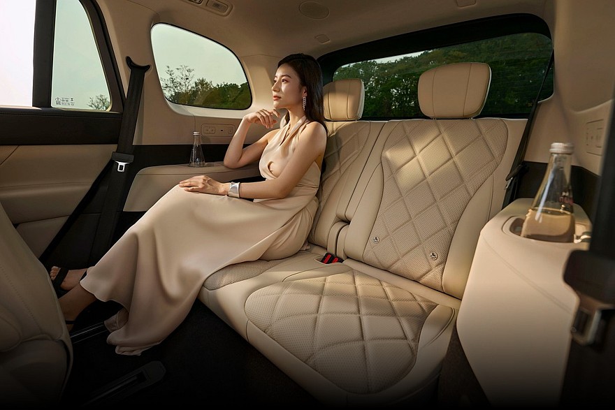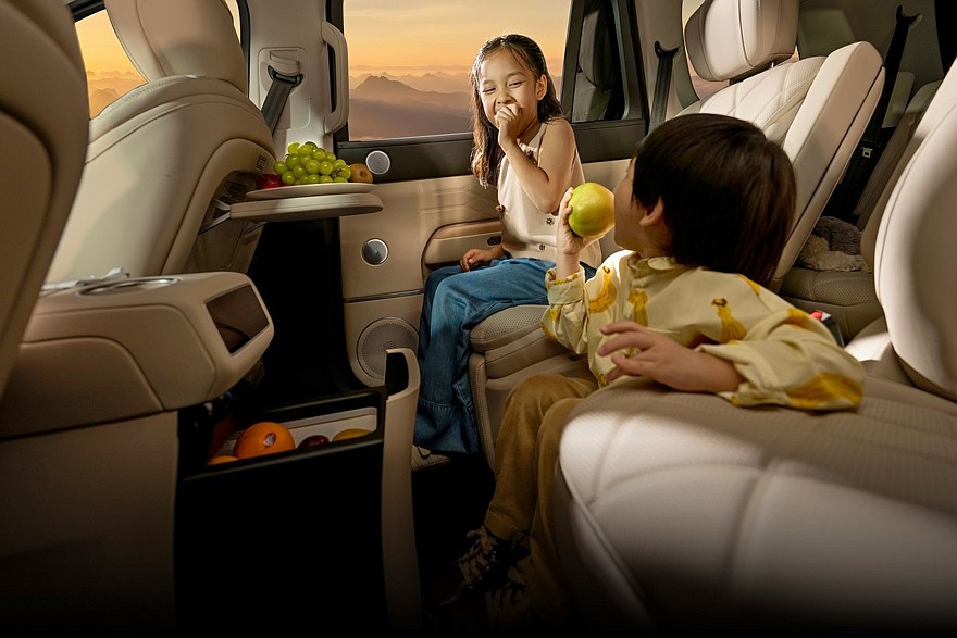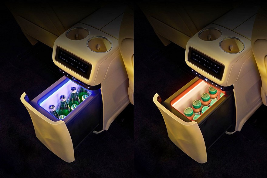 Начиная со следующей по старшинству комплектации появляются подогрев руля, массажер кресел первого и второго ряда, подогрев сидений третьего ряда, собственный планшет для задних пассажиров (прикреплен к потолку). Полноприводные версии – это также адаптивные амортизаторы. Наконец, топовый T11 имеет встроенный в торец тоннеля выдвижной отсек с функциями подогрева и охлаждения, откидной столик (интегрирован в спинку переднего пассажирского кресла) и более продвинутый автопилот Falcon 700 с лидаром над лобовым стеклом и 11 камерами.