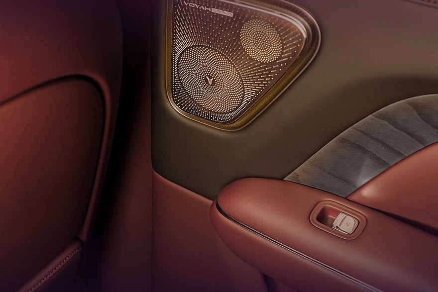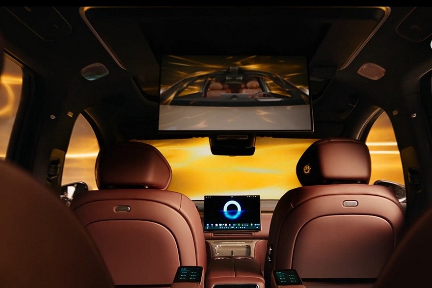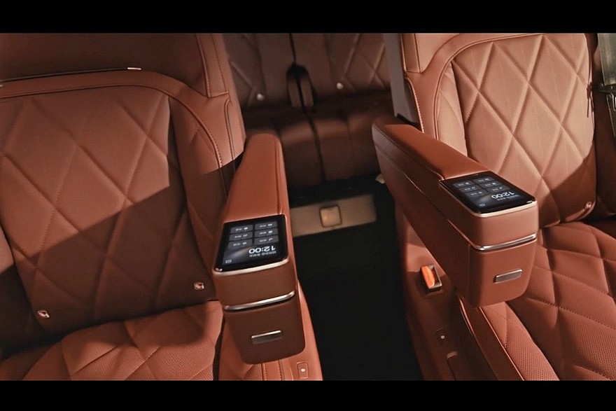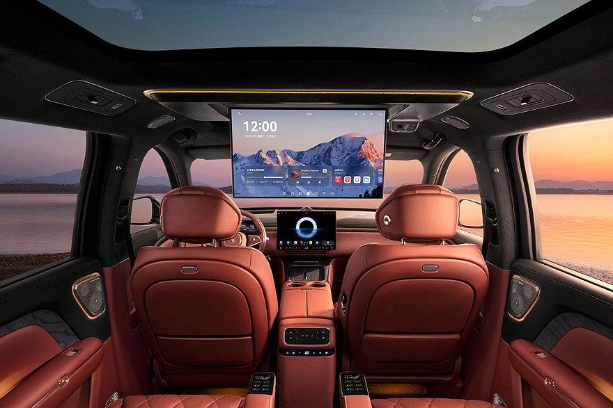 Дополнительные пульты встроены и в подлокотники кресел второго ряда. Сами сиденья имеют не только подогрев, вентиляцию, массажер и откидные подставки для ног, но и искусственный интеллект, что бы это ни значило. Для пассажиров также предусмотрен гигантский «телевизор», он прикреплен к потолку. В арсенале кроссовера еще значится аудиосистема Voyah Sound аж с 32 динамиками, включая отдельную «колонку» поверх передней панели и динамики, встроенные в подголовники сидений.