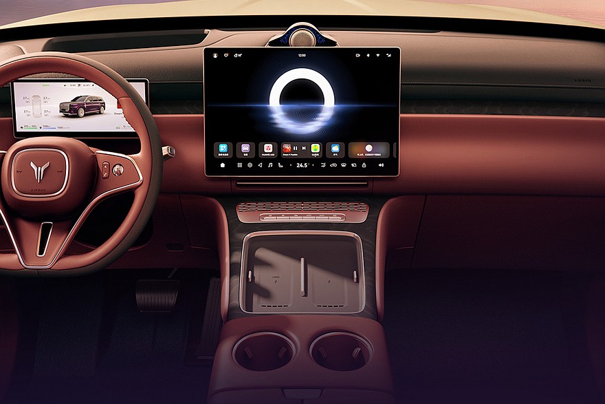 Как и экстерьер, шестиместный салон Voyah Taishan оформлен в новом стиле, который уже примерили седан Passion L и топовый минивэн Dream. Кроссовер получил раздельные экраны приборки и мультимедийной системы. Мультимедиа работает на операционке HarmonySpace 5.0 от Huawei. Руль – как у Voyah Passion L. На центральном тоннеле Taishan расположены две площадки для беспроводной зарядки и пара неприкрытых подстаканников, а в его торце есть еще одна сенсорная панель, с помощью которой задние пассажиры смогут управлять различными функциями. Кроме того, в тоннеле наверняка спрятан отсек с подогревом и охлаждением. Вместо привычного селектора коробки – подрулевой рычажок.