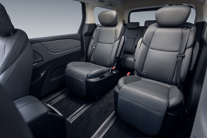 В списке оборудования заявлены: светодиодная оптика, 18-дюймовые колеса, электропривод сдвижных дверей и двери багажника, люк, кожаная обивка, подогрев и вентиляция кресел первого и второго рядов (сиденья второго ряда – еще и с массажером), объединенные в табло виртуальная приборка и экран мультимедиа (каждый дисплей диагональю 12,3 дюйма), трехзонный климат-контроль, беспроводная зарядка для смартфона, аудиосистема с 12 динамиками.