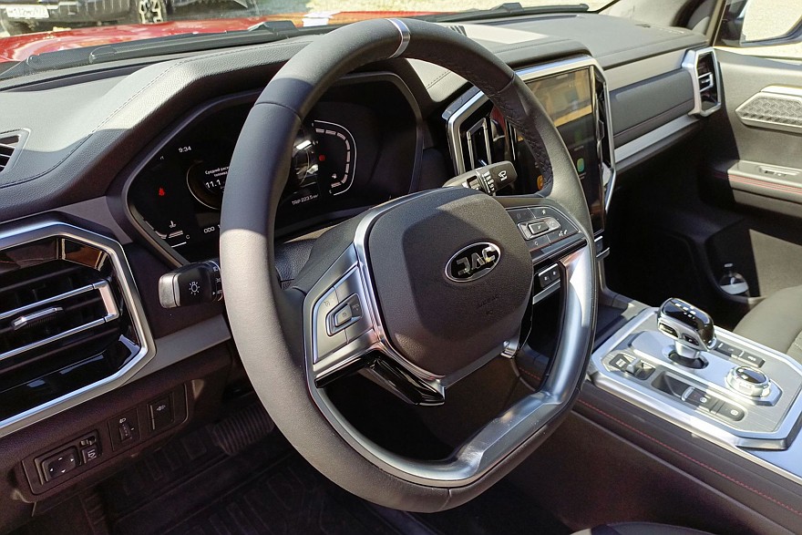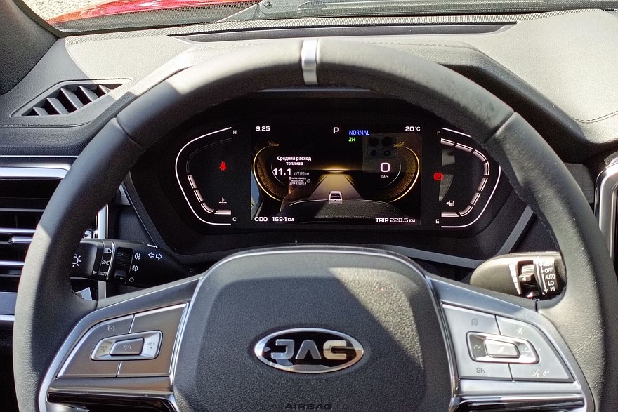 Выбор режимов движения, равно как и типа привода, осуществляется тоже без приевшегося сенсорного тыкания. В первом случае у нас есть что-то вроде тумблера-качельки возле селектора АКП, во втором – привычная шайба, с которой никак не ошибешься. Кроме того, кнопки есть и на рулевом колесе, хорошо знакомом по другим моделям JAC. В общем, ребята от души постарались соединить модное с традиционным, за что им, повторюсь, искренняя благодарность.