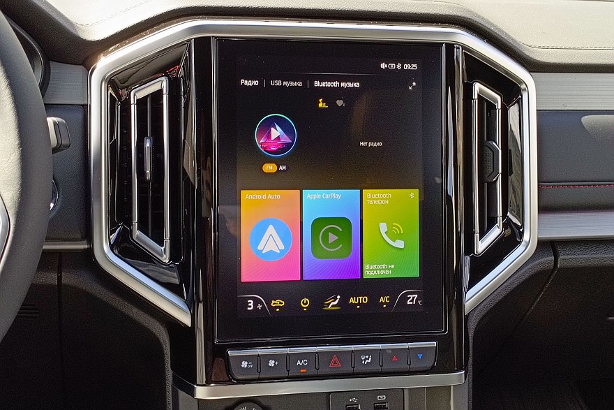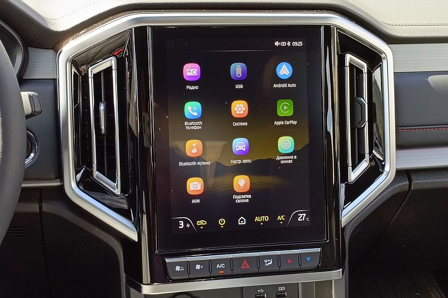 В оформлении салона, как практически в любом современном китайском автомобиле, ярко и массивно доминирует гигантский 10,4-дюймовый сенсорный HD-дисплей мультимедийной системы. Но и тут снова хочется сказать спасибо китайским товарищам (или их российским представителям) за то, что водитель и пассажиры не остались полностью без физических клавиш. К счастью, им предоставлена возможность управлять настройками климатической системы с помощью классических кнопок, которые находятся под дисплеем.