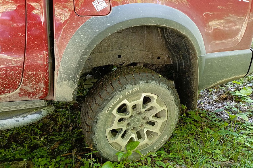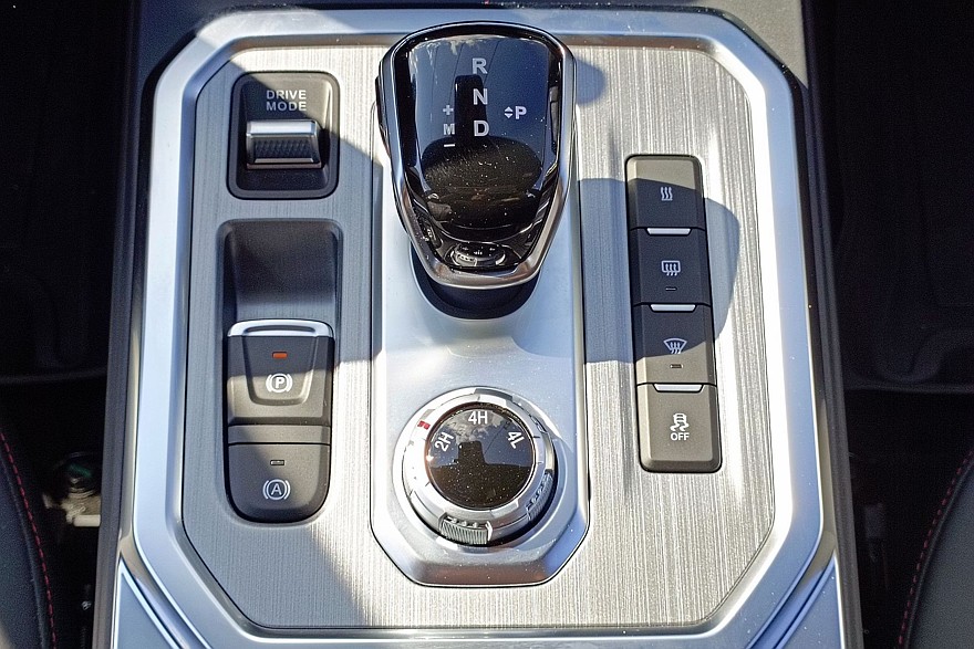 На выбор водителю предложены три режима: 2WD с передачей момента только на заднюю ось, 4WD High, подключающий на сомнительных грунтах все четыре колеса, и 4WD Low для совсем уж сурового бездорожья. На последнем иногда не помешает и ранее упомянутый полноценный самоблок, а не его бутафорская инсинуация, которая иногда встречается на других пикапах.