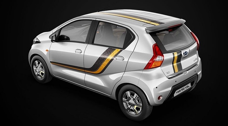 На капоте, крыше и дверях redi-GO Gold имеются черные и золотистые полосы. «Золотые» декоративные элементы еще есть на радиаторной решетке и затемненных колесных дисках. Кузов машины может быть окрашен в серебристый, белый или бронзовый цвета.