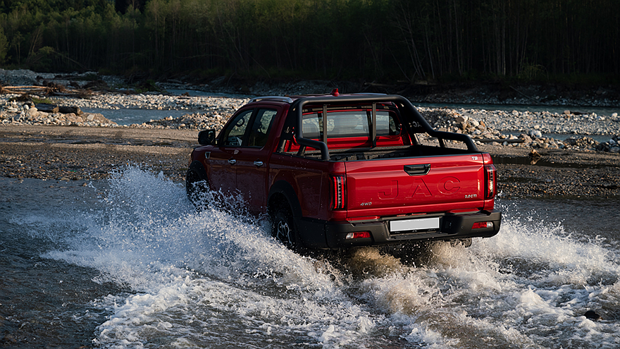 Речь идёт о модификации JAC T9 Urban, главным отличием которой от уже представленных в РФ версий является независимая задняя многорычажная подвеска Multilink (у других исполнений – задняя подвеска зависимая рессорная). Угол въезда – 27o, угол съезда – 23o, угол преодолеваемого подъёма – 30%.