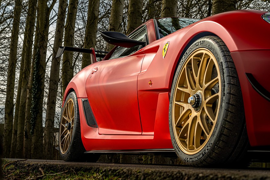 Салон остался стоковым, но обновлены материалы отделки. В виде опции предлагаются встроенный трубчатый каркас безопасности, облегчённые сиденья на углепластиковых каркарсах и современная мультимедийная система. Также за доплату можно дополнительно увеличить мощность двигателя до уровня Ferrari 599XX и выбрать 6-ступенчатую МКП вместо «робота».