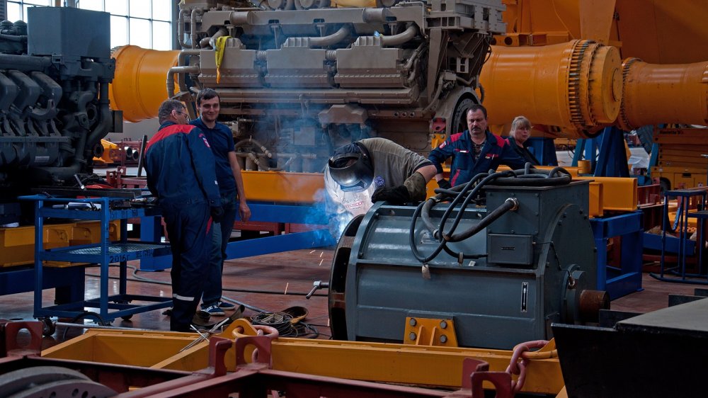 Все более лёгкие самосвалы собирают на других линиях и по вполне традиционной технологии – на конвейерах. А вот сверхтяжёлый самосвал на конвейер не поставишь, и этому есть несколько причин.