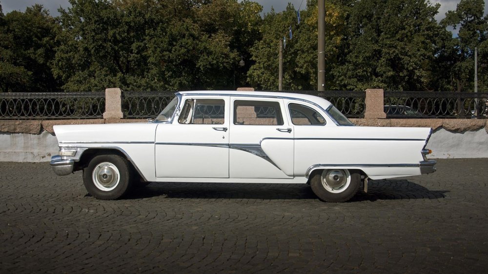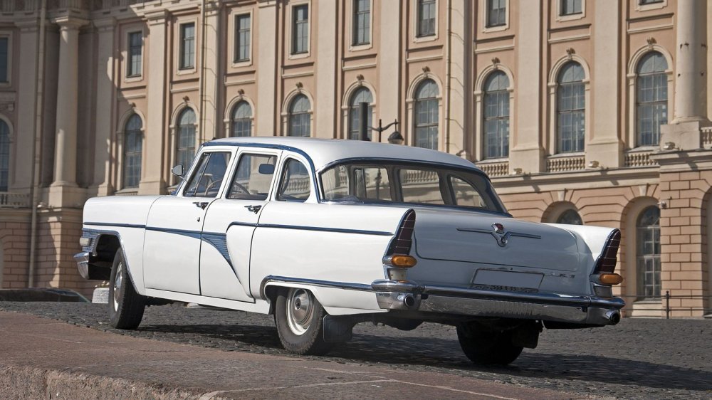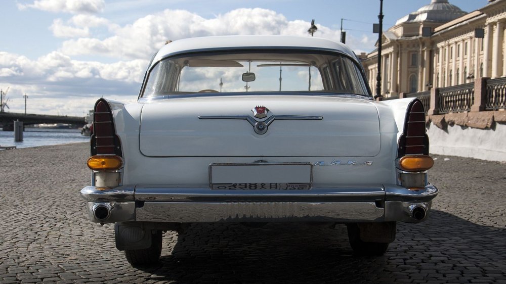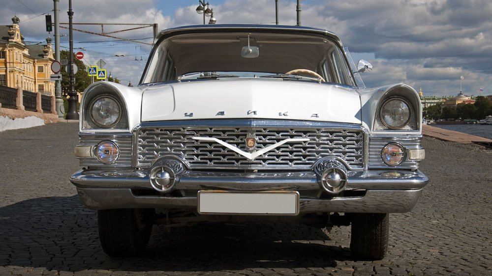Я очень хотел отвлечься от всех стереотипов, связанных с историей Чайки. Мол, это копия американской машины, ничего советского в ней нет и быть не могло, потому что эту Чайку отечественные специалисты спёрли полностью у буржуинов, заменив дюймовые размеры метрическими. Отвлекался я от стереотипов как мог, разве что водку с селёдкой и бородинским хлебом не ел, ибо был за рулём. Но у меня ничего не вышло.