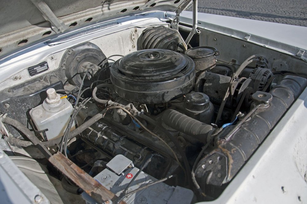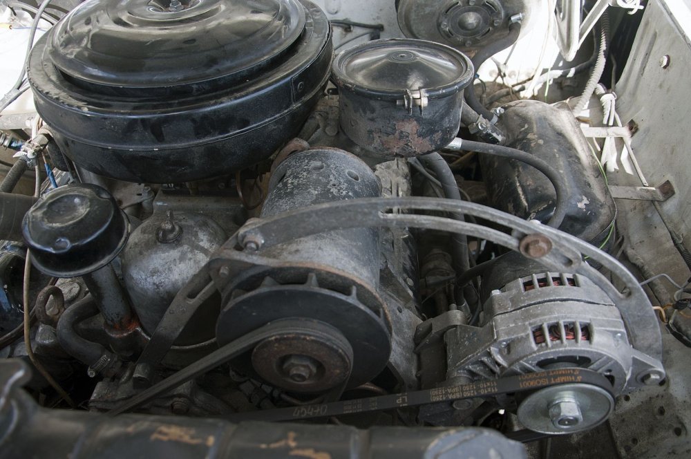 Кстати, сам по себе кузов Чайки – не несущий, как это было на предыдущем ЗИМе (ГАЗ-12), а установленный через резиновые прокладки в 16 точках на Х-образной раме. Для того времени это было революционным решением. Да и вся остальная техника Чайки выглядела очень прогрессивно. Например, мотор был создан специально для этой машины, и получился он довольно передовым даже по американским меркам. Там до 60-х моторы были преимущественно чугунными, а вот мотор Чайки почти полностью алюминиевый: и сам блок (с «мокрыми» чугунными гильзами), и головки блока (у V8 их две), и поршни, и даже впускной коллектор. Мощность мотора составляла 195 л.с. при 4400 оборотах, максимальный момент – 412 Нм при 2500 оборотах. Момент, надо сказать, весьма хороший. Ну, тут против объёма не попрёшь – всё-таки 5,5 литра.